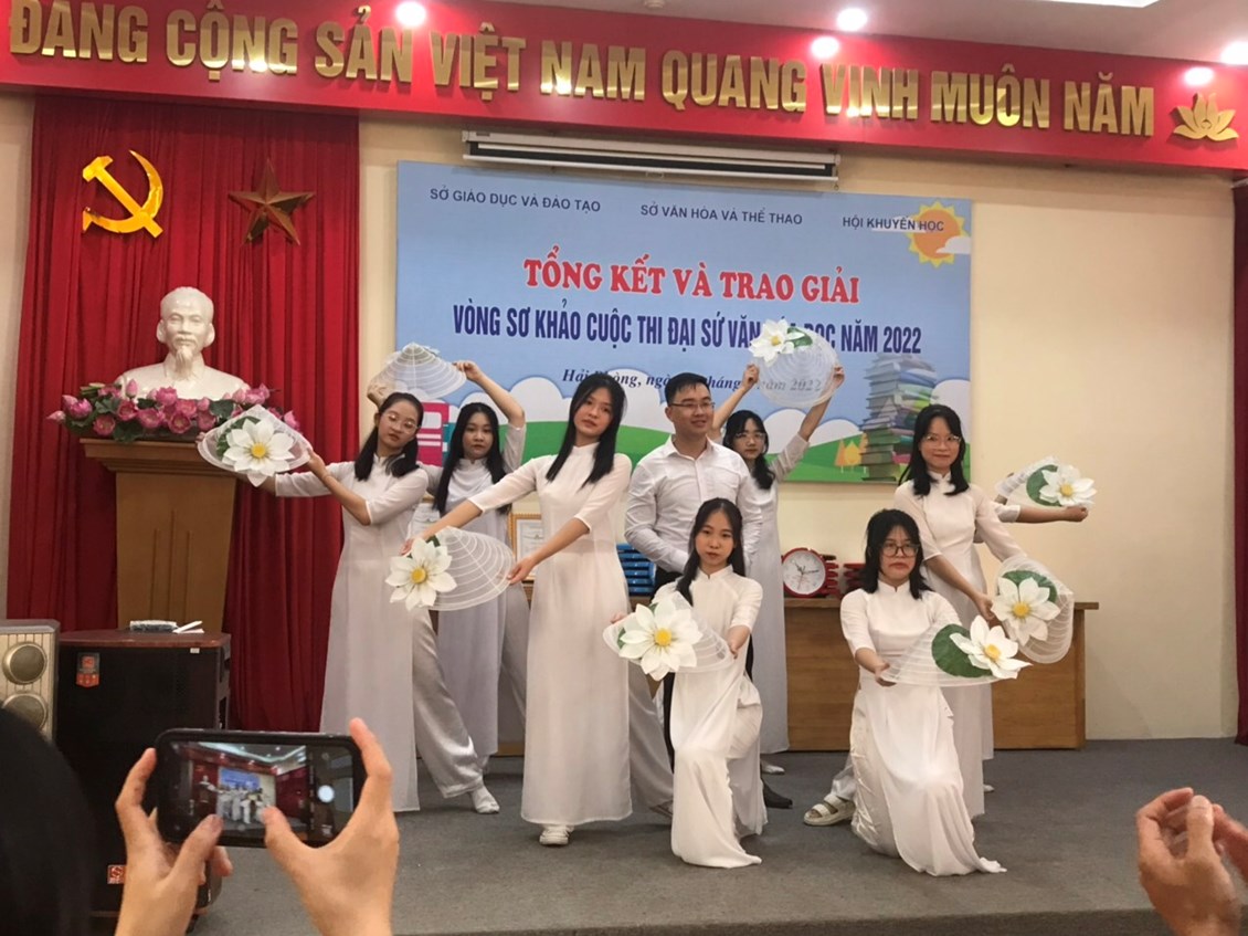 Trao tặng danh hiệu Đại sứ Văn hóa đọc năm 2022 cho 30 em có bài dự thi xuất sắc nhất. Sáng 24/8, tại Thư viện thành phố, Sở Văn hóa và Thể thao phối hợp cùng Sở Giáo dục và Đào tạo, Hội Khuyến học thành phố tổ chức Tổng kết và trao giải vòng sơ khảo cuộc thi Đại sứ Văn hóa đọc năm 2022. Cuộc thi Đại sứ Văn hóa đọc năm 2022 với chủ đề “Khát vọng phát triển đất nước” được phát động từ tháng 3/2022, thu hút 30.152 bài dự thi từ 471 trường học trên địa bàn thành phố. Ban Tổ chức cuộc thi đã chấm và lựa chọn được 30 bài dự thi xuất sắc là đại diện cho các Đại sứ Văn hóa đọc của thành phố Hải Phòng năm 2022, trong đó trao tặng 5 giải Nhất, 5 giải Nhì, 10 giải Ba và 10 giải Khuyến khích. Trường THCS Đông Hải có học sinh Linh Nga lớp 7C6 là đại diện duy nhất của Quận Hải An vinh dự đạt giải Khuyến khích của hội thi! Theo đó THCS Đông Hải là đơn vị 2 năm liên tục có Học sinh được nhận danh hiệu Đại sứ văn hoá đọc cấp Thành phố của quận Hải An.