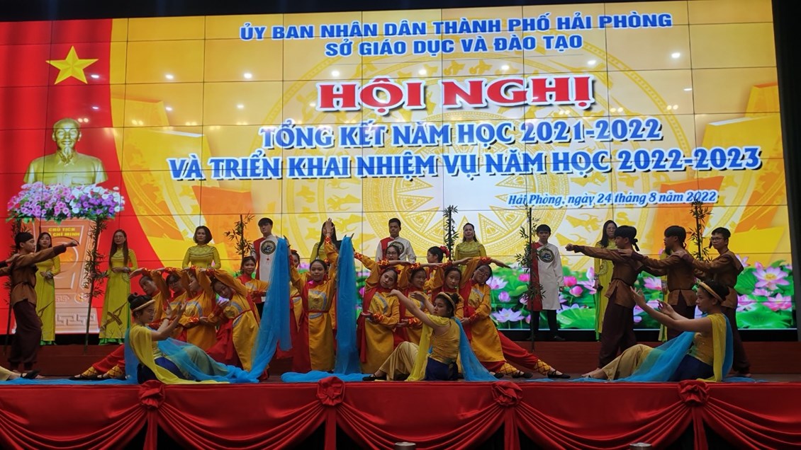 Sáng 24/8/2022 tại trung tâm Hội nghị thành phố, Sở Giáo dục và Đào tạo Hải Phòng tổ chức Hội nghị Tổng kết năm học 2021 -2022 và triển khai nhiệm vụ năm học 2022 -2023. Vinh dự cho thầy và trò trường THCS Đông Hải tham gia biểu diện văn nghệ chào mừng Hội nghị. Trên đây là một số hình ảnh Đội Văn nghệ nhà trường.