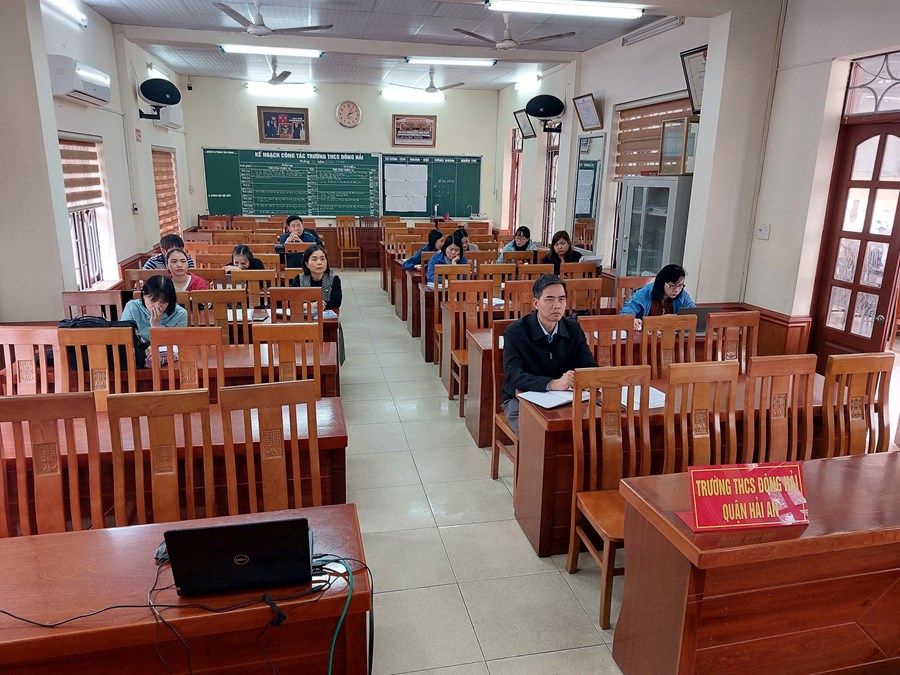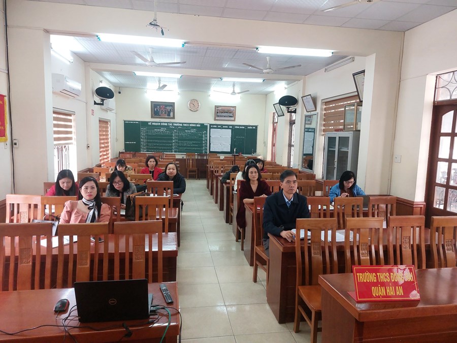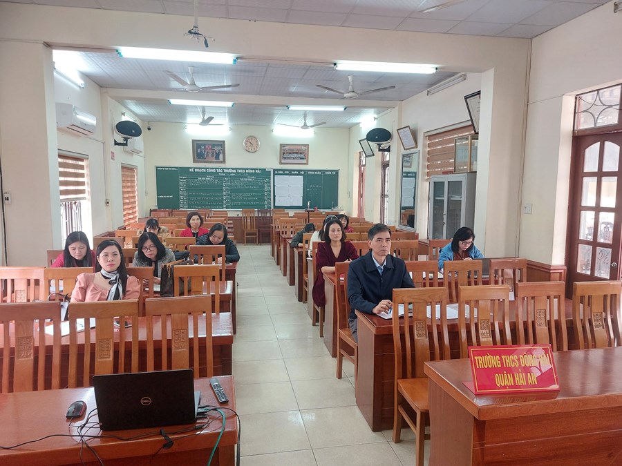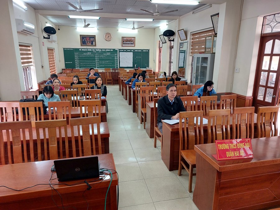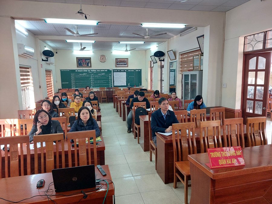 Ngày 20 tháng 02 năm 2023 điểm cầu trực tuyến tại trường THCS Đông Hải tập huấn về sách giáo khoa lớp 8. Nội dung buổi tập huấn như sau: