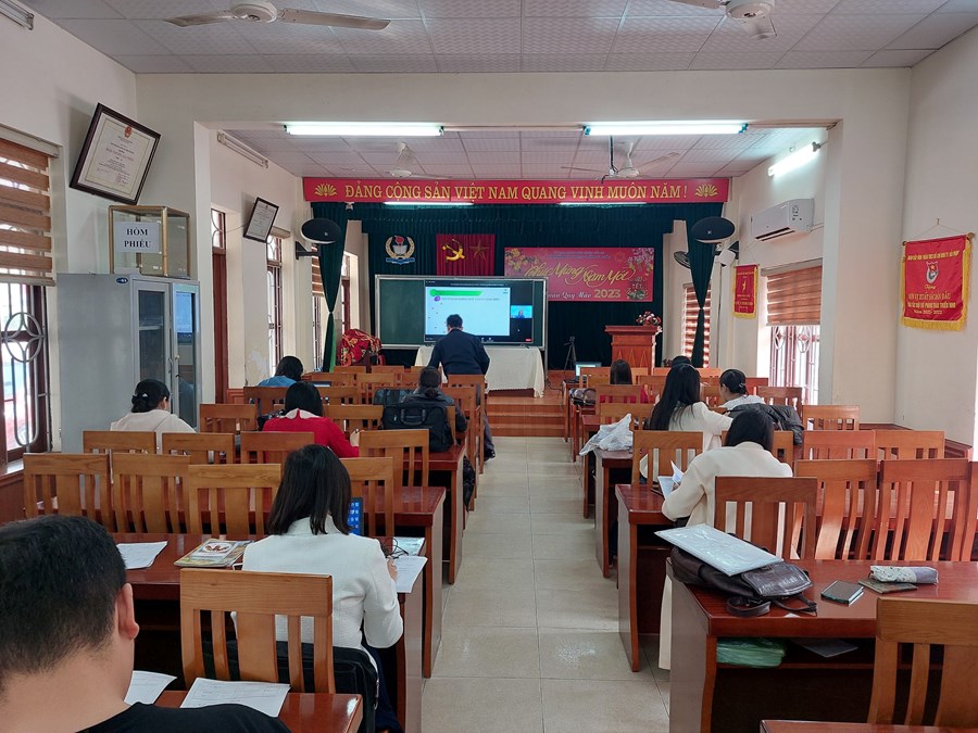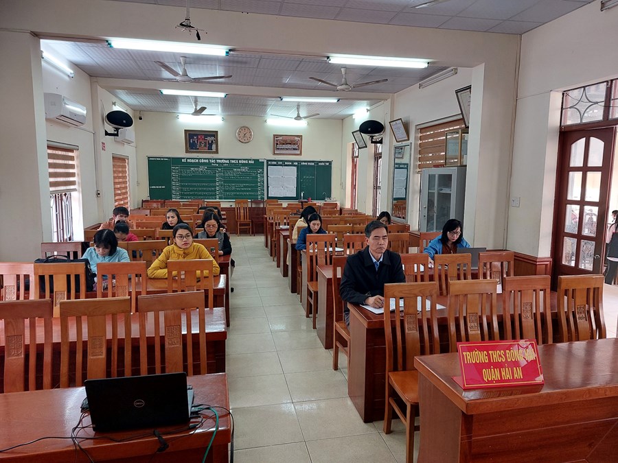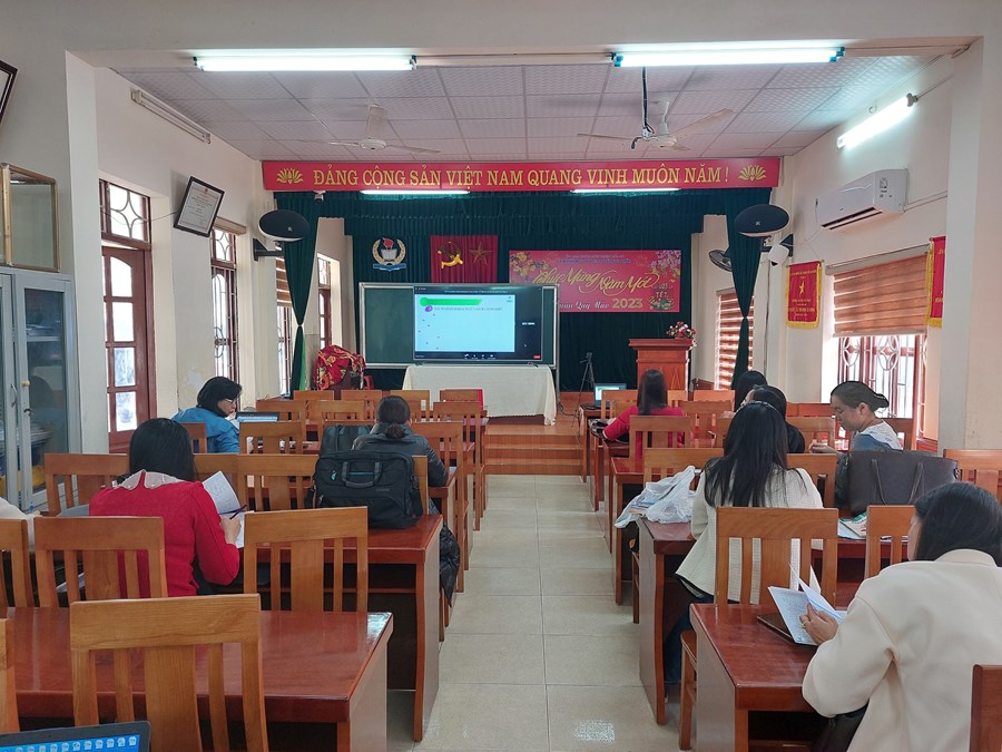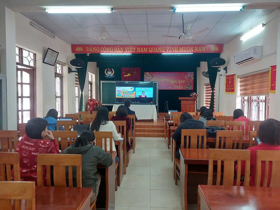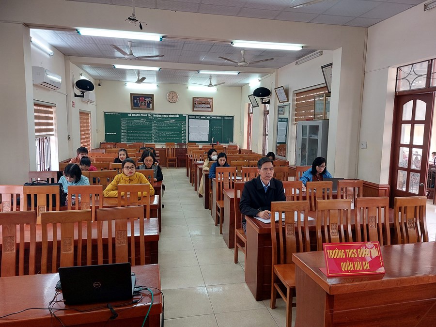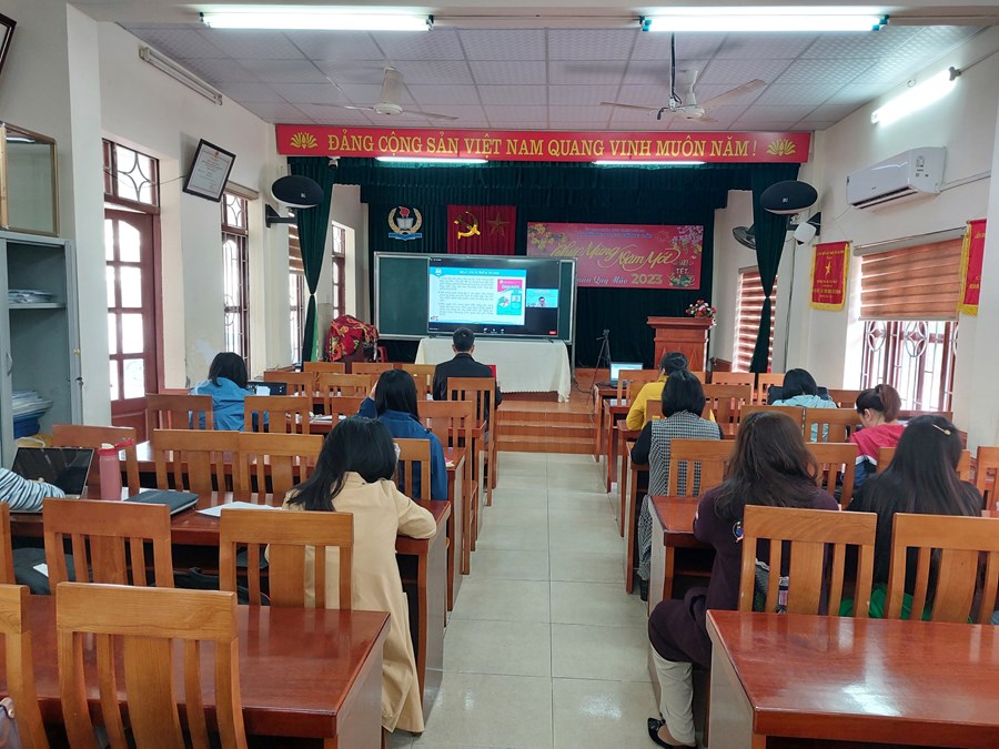 Ngày 20 tháng 02 năm 2023 điểm cầu trực tuyến tại trường THCS Đông Hải tập huấn về sách giáo khoa lớp 8. Nội dung buổi tập huấn như sau:
