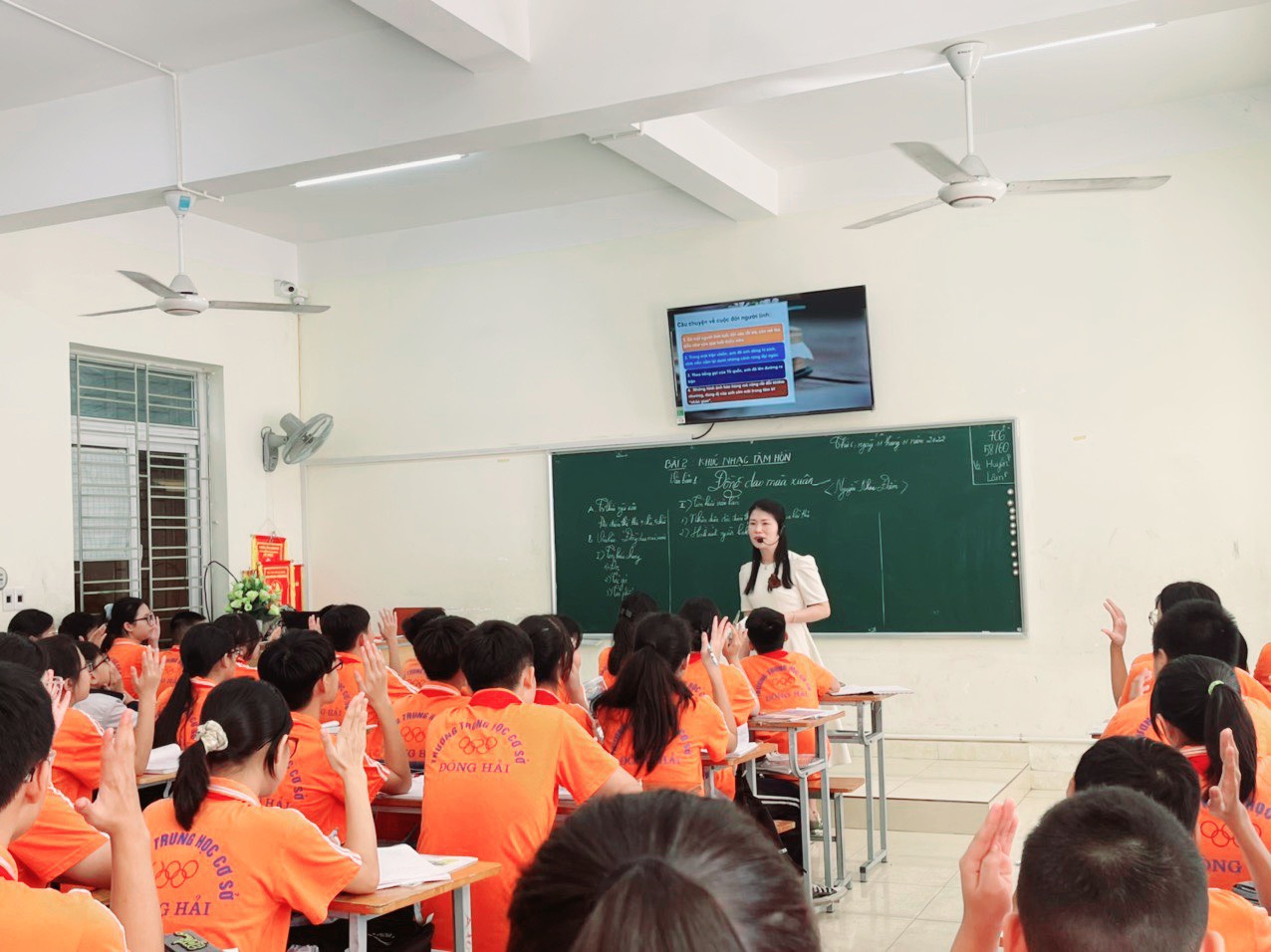 Chiều thứ 6 ngày 12/11/2022, đồng chí Nguyễn Thị Thu Hương đại diện Nhóm Văn tổ KHXH lên lớp tiết dạy chào mừng ngày nhà giáo Việt Nam 20/11. Tiết học “Đồng dao mùa xuân” rất sôi nổi, bổ ích và lí thú; phát huy được tính tự học, sáng tạo của học sinh. Đến dự hội giảng có đc Trần Thị Thắng – Phó hiệu trưởng nhà trường và các đc trong tổ KHXH. Hi vọng trong những ngày tới sẽ còn nhiều bài học hay, nhiều hoa điểm tốt thay lời tri ân tới những người lái đò thầm lặng – đưa học sinh cập bến bờ tri thức….