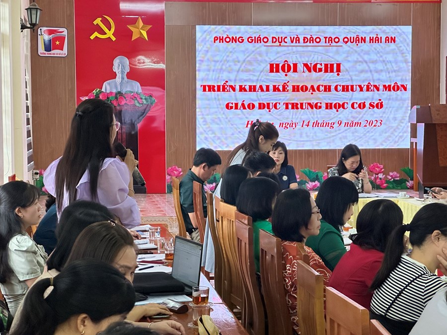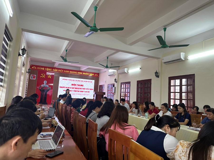 Sáng 14/9/2023, PGD quận Hải An tổ chức hội nghị triển khai kế hoạch chuyên môn giáo dục THCS năm học 2023-2024 tại trường THCS Lê Lợi, Hải An. Tham dự hội nghị có các đồng chí bên ban lãnh đạo PGD Quận:đồng chí trưởng phòng Nguyễn Thị Minh Thu, đồng chí phó phòng Nguyễn Thị Yến và các đồng chí chuyên viên phòng giáo dục. Về phía các trường có sự tham dự của tất cả các đồng chí Hiệu trưởng, Phó hiệu trưởng, các đồng chí tổ trưởng cùng các đồng chí là cốt cán các bộ môn của các trường THCS trên địa bàn Quận.