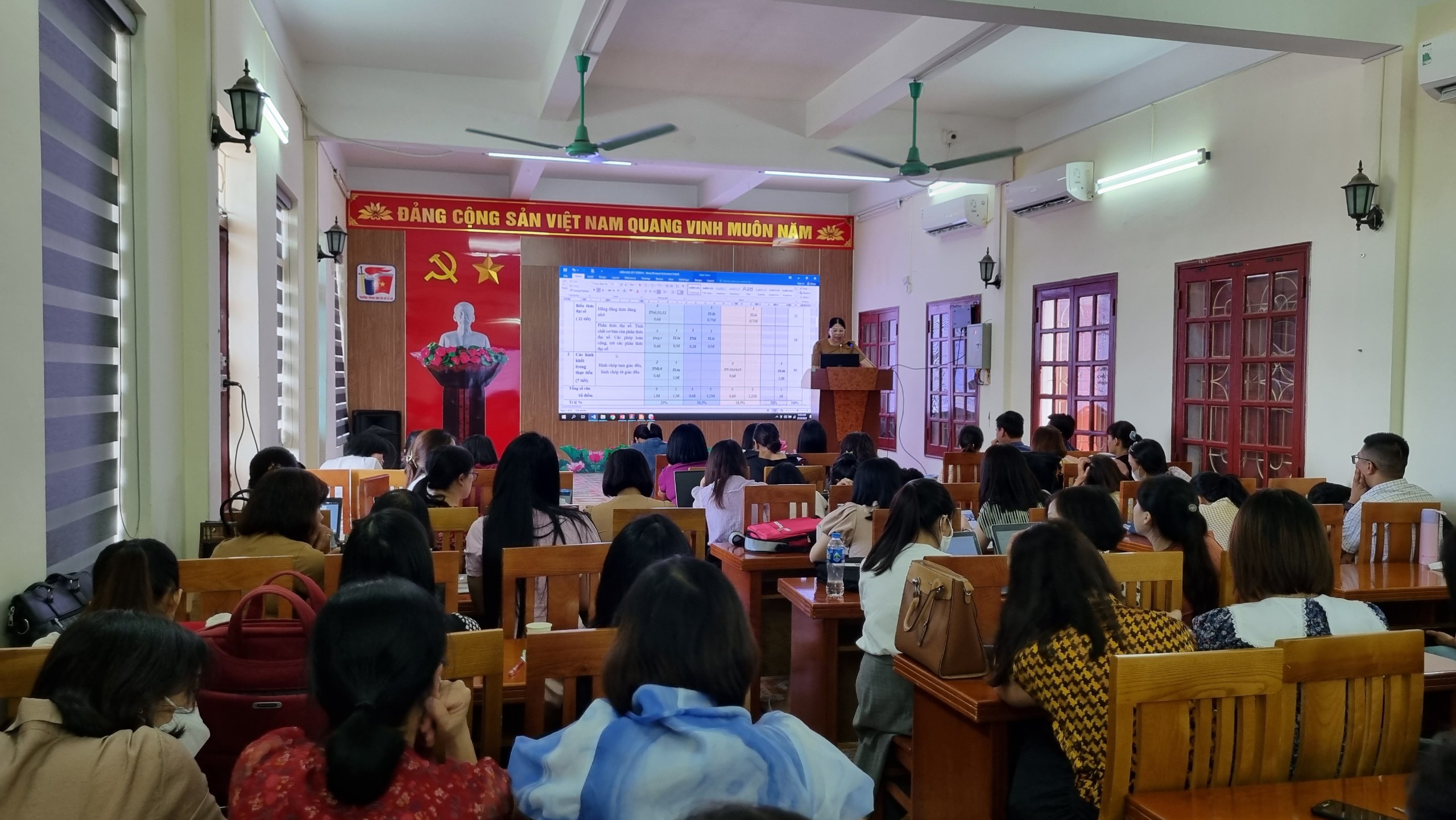 Sáng ngày 21.09.2023, 110 giáo viên môn Toán quận Hải An đã có mặt tại trường THCS Lê Lợi để sinh hoạt chuyên môn toàn quận. Tại hội nghị, các thầy cô giáo bộ môn Toán được nghe hướng dẫn của đồng chí Nguyễn Thị Kim Oạnh - giáo viên dạy Toán trường THCS Lê Lợi và là giáo viên cốt cán bộ môn Toán của quận Hải An hướng dẫn xây dựng ma trận, bản đặc tả và cách ra đề các bài kiểm tra cuối kỳ và giữa kỳ môn Toán 8. Sau đó, giáo viên các trường được thực hành. Tại hội nghị, giáo viên trường THCS Đông Hải đã tích cực tham gia hoạt động và tích lũy được thêm nhiều kiến thức cũng như kinh nghiệm cho bản thân.