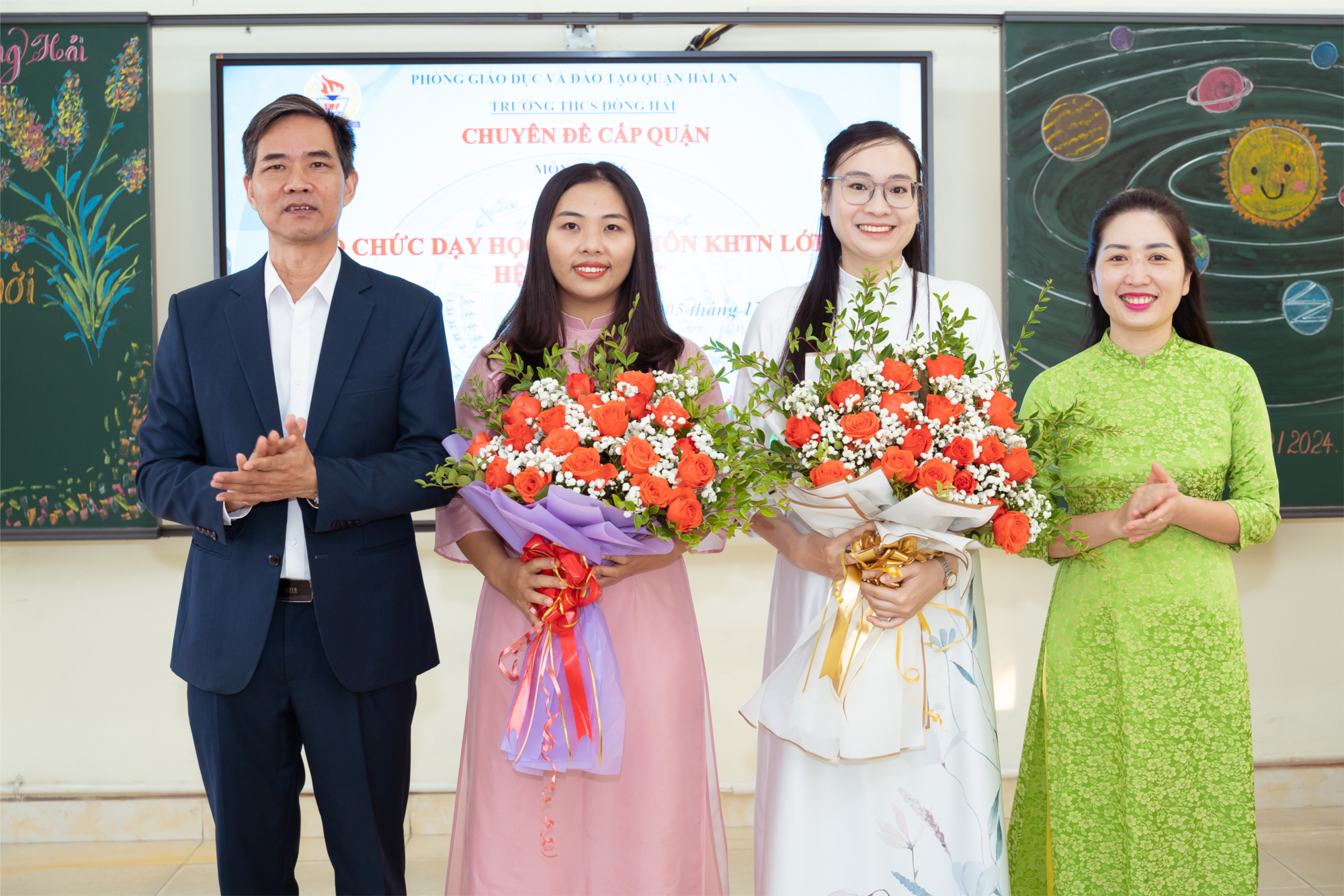 - Đại biểu nhà trường có: Thầy Phạm Hồng Khánh-Bí thư chi bộ- Hiệu trưởng nhà trường; các thầy cô giáo trong hội đồng sư phạm và sự có mặt của 20 em học sinh đại diện cho học sinh khối 6 trường THCS Đông Hải tham gia tiết học chuyên đề.