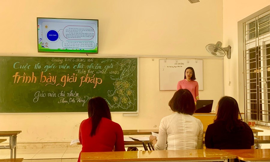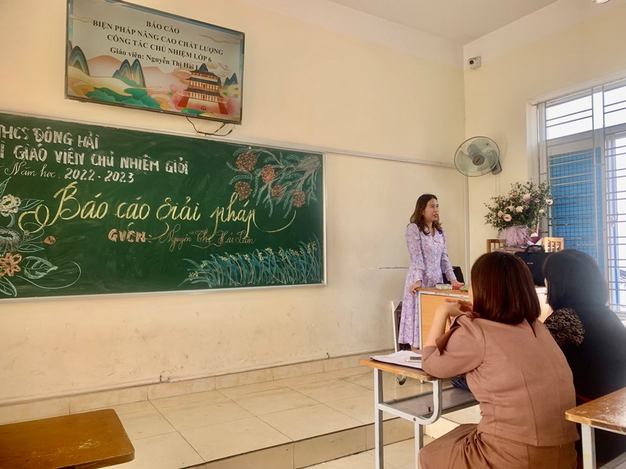Ngày 10/03/2023, Trường THCS Đông Hải tổ chức hội thi giáo viên chủ nhiệm giỏi cấp trường với sự tham gia của 25 giáo viên chủ nhiệm với hai phần thi: tiết dạy và báo cáo giải pháp. Dưới sự chỉ đạo sát sao của Ban giám hiệu nhà trường, hội thi đã diễn ra thành công tốt đẹp. Các đồng chí giáo viên chủ nhiệm chuẩn bị bài cẩn thận, chu đáo, đảm bảo đúng yêu cầu, thể lệ. Ban giám khảo công tâm, đóng góp ý kiến, bổ sung ý tưởng cho anh chị em đồng nghiệp cùng phát triển. Hội thi đã diễn ra thành công, để lại nhiều ấn tượng tốt đẹp.