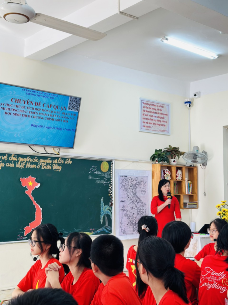 Thực hiện kế hoạch nhiệm vụ năm học 2023-2024, ngày 21/12/2023, dưới sự chỉ đạo của Phòng GD&ĐT quận Hải An, Trường THCS Đông Hải đã tổ chức thành công chuyên đề chuyên môn cấp quận môn Lịch sử và Địa lý “Dạy học chủ đề tích hợp môn Lịch sử và Địa lý với định hướng phát triển phẩm chất và năng lực học sinh theo chương trình GDPT 2018”.