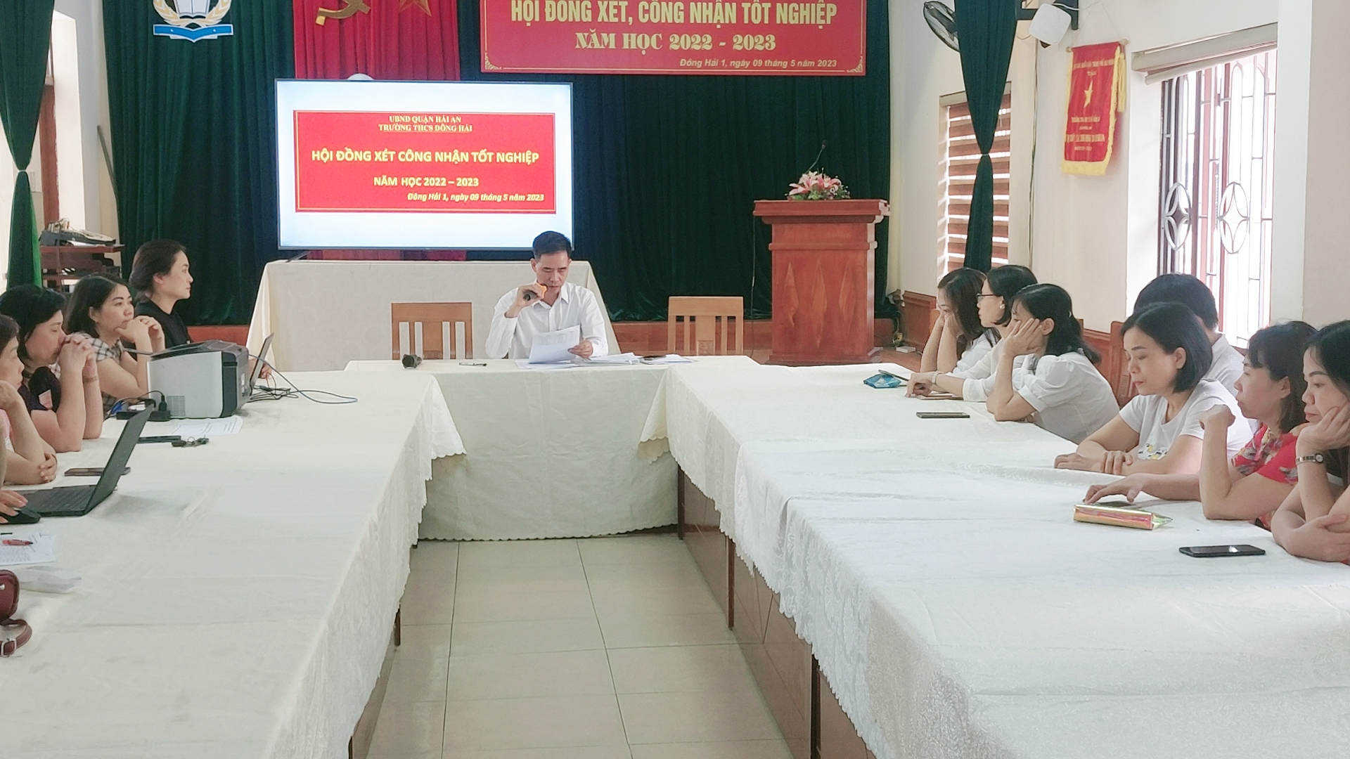 Chiều ngày 9 và 10 tháng 5 năm 2023. Trường THCS Đông Hải đã tổ chức xét tốt nghiệp cho học sinh lớp 9 năm học 2022-2023. Hội đồng đã làm việc nhiệt tình, cẩn thẩn, Hội đồng có 513 học sinh trong đó có 2 học sinh khuyết tật hoà nhập, có 511 học sinh được xét công nhận tốt nghiệp
