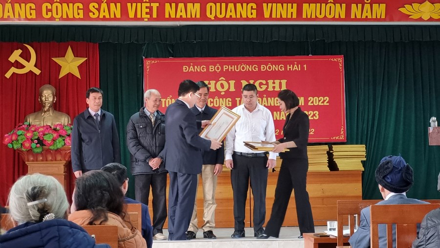 Ngày 22 tháng 12 năm 2022, Đảng bộ phường Đông Hải 1 tổ chức Hội nghị tổng kết Đảng năm 2022 và triển khai nhiệm vụ năm 2023. Tại hội nghị, các Đảng viên đến dự được nghe báo cáo của đồng chí Đỗ Văn Thuấn – Bí thư Đảng bộ phường Đông Hải 1 về kết quả đạt được năm 2022 và phương hướng nhiệm vụ năm 2023. Các đồng chí dự hội nghị cũng đã thảo luận rất sôi nổi, bổ sung cho báo cáo của đồng chí Đỗ Văn Thuấn.