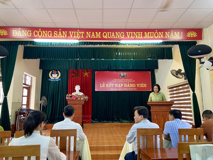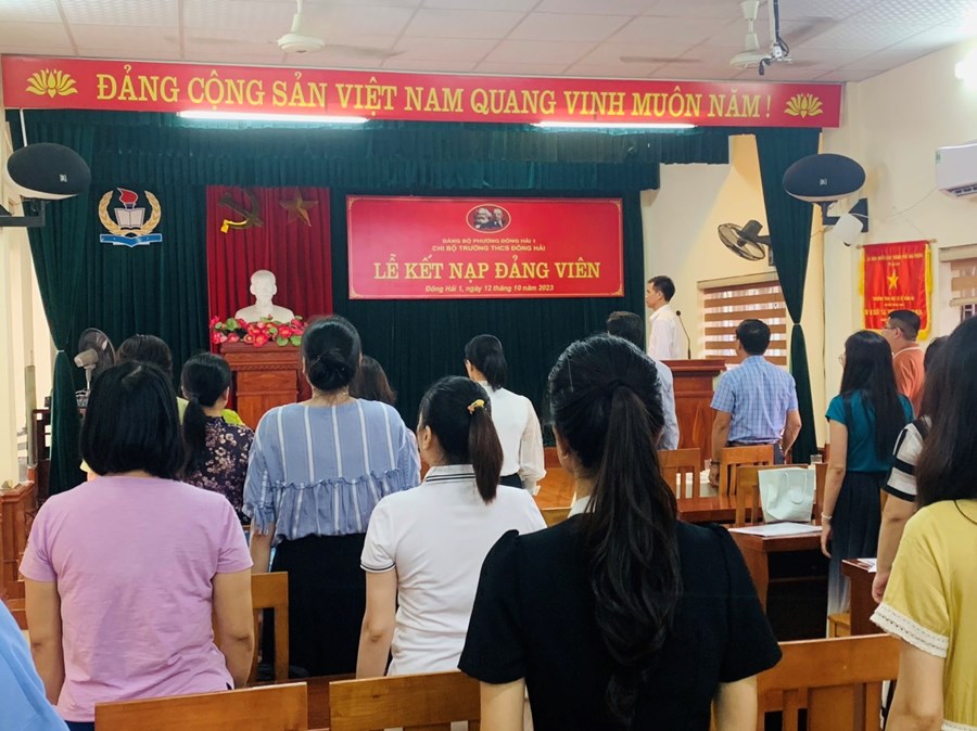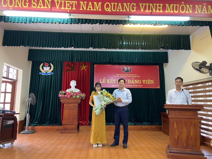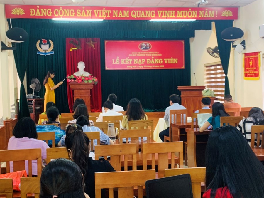 Ngày 12 tháng 10 năm 2023, Chi bộ trường THCS Đông Hải tổ chức Lễ kết nạp Đảng cho quần chúng ưu tú Nguyễn Thị Thanh Thảo .