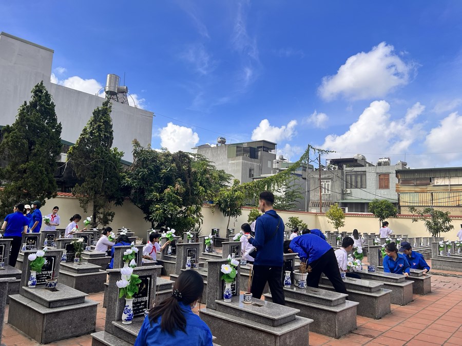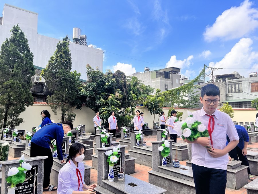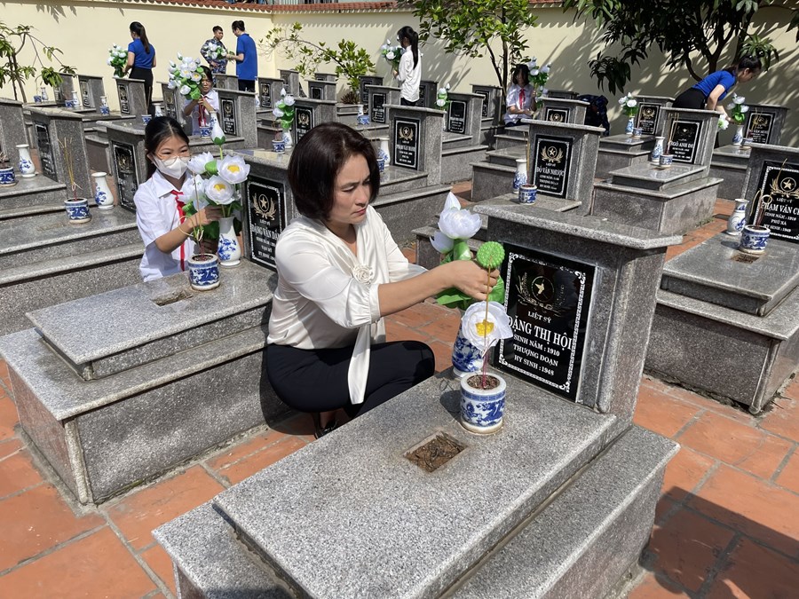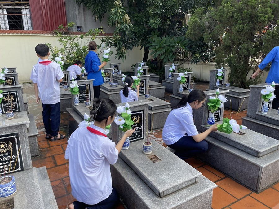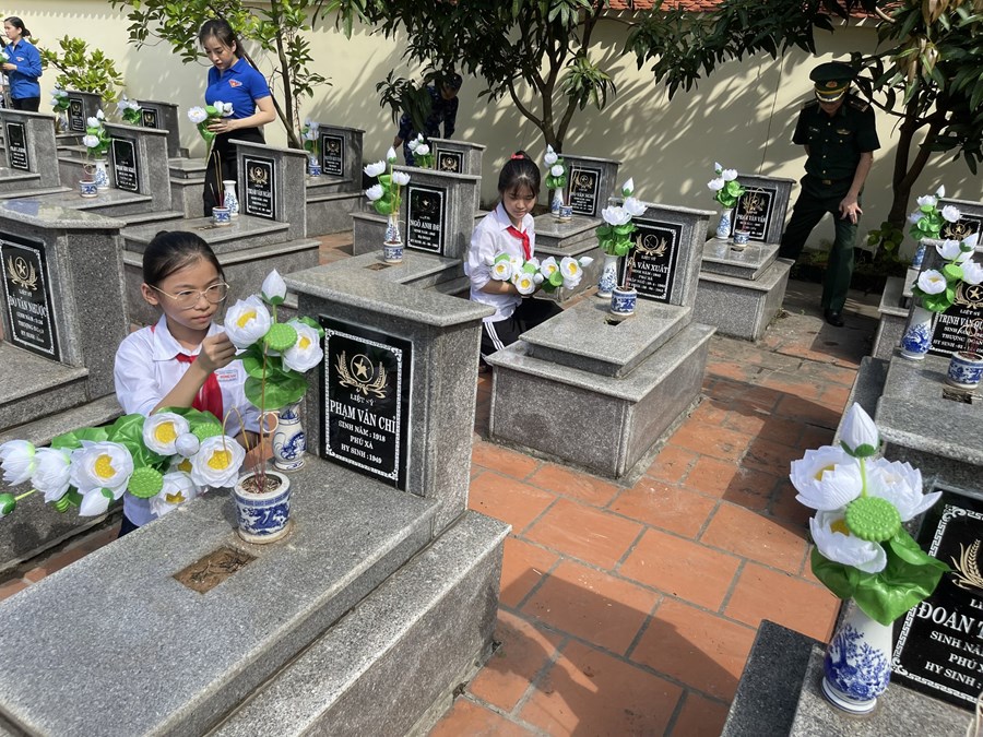 Ngày 24/7/2023 tại nghĩa trang liệt sỹ phường Đông Hải 2, thầy trò trường THCS Đông Hải tổ chức chương trình “Hoa dâng mộ liệt sỹ”- “Tuổi trẻ tri ân, viết tiếp câu chuyện hòa bình”. Tham gia chương trình có thầy giáo Phạm Hồng Khánh- Hiệu trưởng, cô giáo Trần Thị Thắng- Phó hiệu trưởng cùng các thầy cô giáo TPT, chi đoàn giáo viên và các em học sinh tiêu biểu đại diện các tập thể lớp. Chiến tranh đã lùi xa, thế nhưng những mất mát đau thương thì vẫn còn đó. Để giành được độc lập, tự do và thống nhất đất nước, hàng triệu người con trên mảnh đất hình chữ S đã ngã xuống. Chúng cháu đời đời nhớ ơn các anh hùng liệt sỹ.