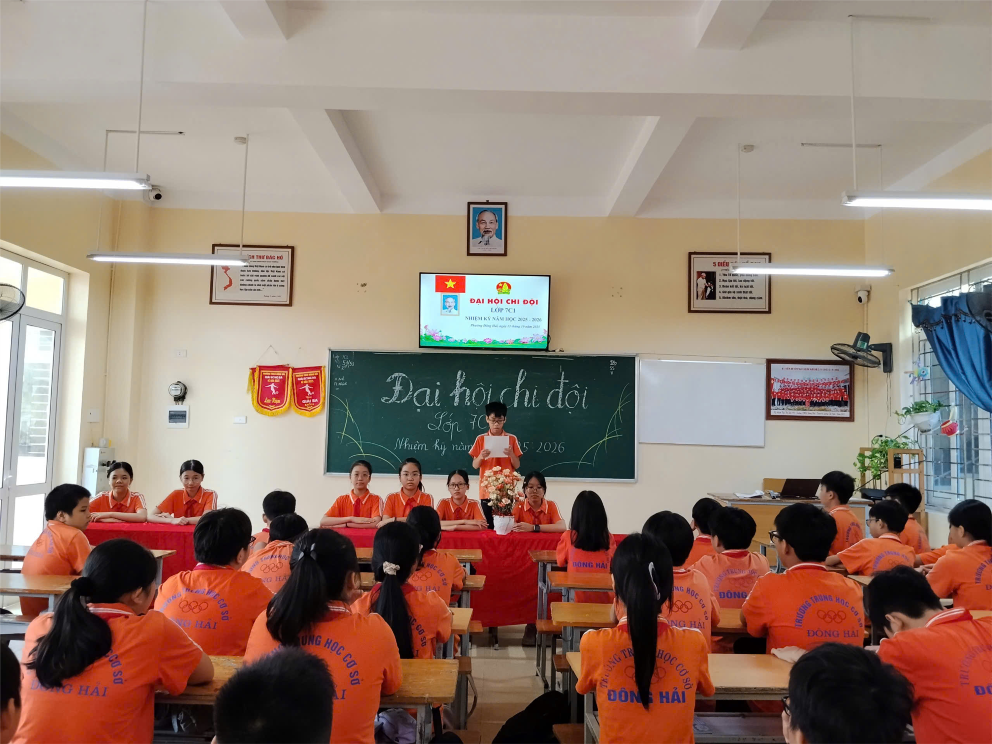 Thực hiện chương trình công tác Đội và phong trào thiếu nhi năm học 2025-2026, ngày 6/10/2025, 46 Chi Đội của Liên đội trường THCS Đông Hải đồng loạt tổ chức Đại hội Chi Đội nhiệm kỳ năm học 2025-2026. Thông qua Đại hội, các Chi Đội đã báo cáo kết quả hoạt động Đội năm học 2024-2025, đề ra phương hướng, nhiệm vụ năm học 2025-2026, đồng thời sáng suốt lựa chọn những đội viên ưu tú bầu vào ban chỉ huy chi đội nhiệm kỳ năm học 2025-2026. Chúc mừng 46 Chi Đội đã tổ chức thành công Đại hội Chi Đội, góp phần tạo nên đội ngũ BCH Chi đội vững mạnh, hướng tới xây dựng BCH Liên Đội có bản lĩnh, trách nhiệm, tích cực xây dựng liên đội giữ vững danh hiệu Liên đội mạnh cấp thành phố.
