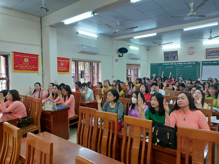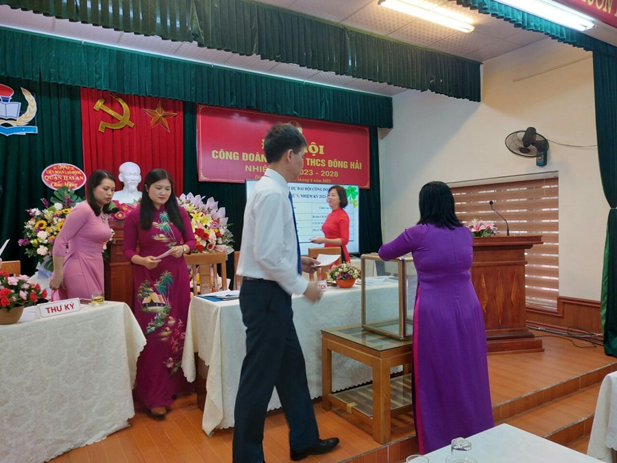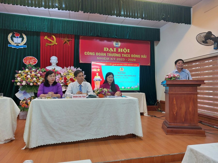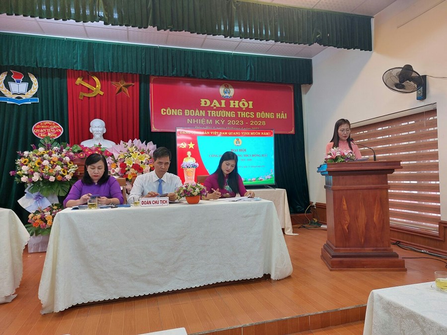 Đại hội Công đoàn trường THCS Đông Hải nhịêm kỳ 2023-2028 có nhiệm vụ quán triệt Nghị quyết Đại hội Đảng, Đại hội công đoàn các cấp, tạo bước chuyển biến mạnh mẽ trong nhận thức và hoạt động công đoàn; đổi mới nội dung, phương thức hoạt động nhằm tập hợp đông đảo cán bộ, nhà giáo, người lao động gia nhập tổ chức công đoàn góp phần xây dựng giai cấp công nhân Việt Nam và tổ chức công đoàn ngày càng vững mạnh đáp ứng yêu cầu trong tình hình mới; tổng kết, đánh giá kết quả hoạt động nhiệm kỳ 2017-2022. Xây dựng mục tiêu, phương hướng, nhiệm vụ nhiệm kỳ 2023-2028 nhằm thực hiện thắng lợi Nghị quyết Đại hội Công đoàn quận lần thứ V; Đây thực sự là đợt sinh họat chính trị dân chủ, rộng rãi của đoàn viên và người lao động. Thông qua Đại hội, lựa chọn, bầu vào Ban chấp hành Công đoàn nhà trường, nhiệm kỳ 2023-2028 những người có tâm huyết, nhiệt tình, trách nhiệm, có uy tín, có khả năng triển khai, tổ chức thực hiện nghị quyết của Đại hội và trong phong trào CNVCLĐ, đại diện cho tiếng nói, nguyện vọng của đoàn viên; bầu Đoàn đại biểu dự Đại hội V Công đoàn quận, nhiệm kỳ 2023-2028. Với tinh thần “Đổi mới - Dân chủ - Đoàn kết - Phát triển ”, Đoàn viên công đoàn nhà trường quyết tâm đem hết sức mình thực hiện thắng lợi các mục tiêu do Đại hội đề ra. Thành công của Đại hội là nguồn sức mạnh to lớn để đưa hoạt động công đoàn Trường THCS Đông Hải đồng hành cùng chuyên môn xây dựng nhà trường ngày càng phát triển.