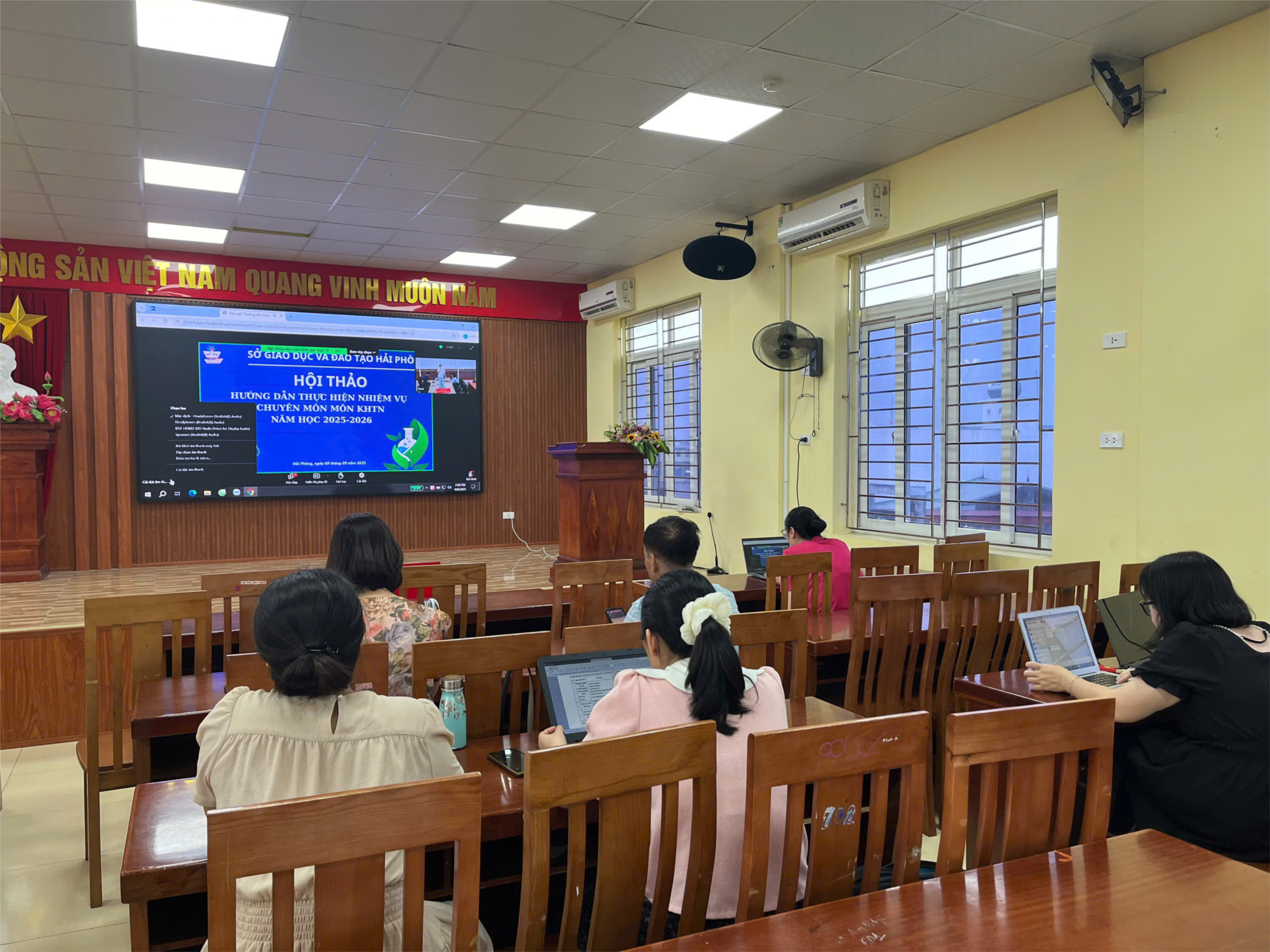 Chiều ngày 09/9/2025, giáo viên nhóm Khoa học Tự nhiên trường THCS Đông Hải đã tham dự Hội thảo trực tuyến “Hướng dẫn thực hiện nhiệm vụ chuyên môn môn Khoa học Tự nhiên năm học 2025-2026” do Sở Giáo dục và Đào tạo tổ chức.