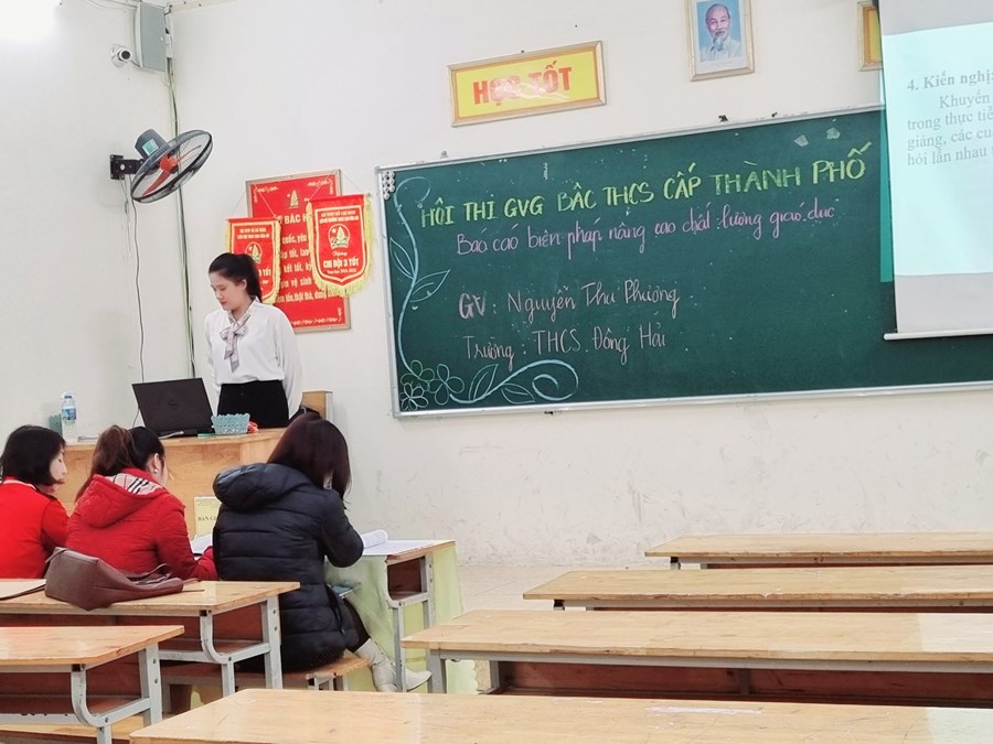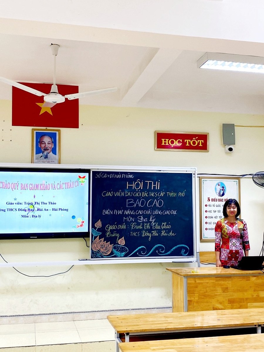Ngày 14,15,16/02/2023, Sở GD và ĐT Hải Phòng tổ chức Hội thi GV dạy giỏi Thành phố bậc THCS năm học 2022- 2023. Đây là cơ hội tuyệt vời để giáo viên thể hiện năng lực sư phạm, sự sáng tạo trong đổi mới PPDH theo Chương trình GDPT 2018 nhằm phát huy năng lực, phẩm chất học sinh đồng thời tuyên dương nhân rộng những điển hình tiên tiến trong dạy và học góp phần nâng cao chất lượng giáo dục THCS; khuyến khích giáo viên giao lưu, học hỏi kinh nghiệm trong giảng dạy. Hưởng ứng hội thi, trường THCS Đông Hải quận Hải An vinh dự có 06 thầy cô được cử làm BGK các môn Toán, Hóa, Ngữ văn, Địa lí; 10 giáo viên tham dự thi thuộc các môn Ngữ văn, Địa lí, Tiếng Anh, Âm nhạc, Sinh học, Hóa học, Tin học, Thể dục. Được sự quan tâm chỉ đạo sát sao của Ban giám hiệu, Tổ nhóm chuyên môn đã có kế hoạch phân công giáo viên cốt cán cùng nghiên cứu bài dạy với các giáo viên dự thi bám sát mục tiêu chương trình GDPT 2018; dạy thử, rút kinh nghiệm bài dạy và báo cáo giải pháp nâng cao chất lượng dạy học. Thật đáng tự hào khi tất cả các thầy cô tham dự đã hoàn thành xuất sắc phần thi của mình. Đây là động lưc quan trọng để các thầy cô tiếp tục phát huy thành tích, góp phần nâng cao chất lượng dạy và học của bản thân và nhà trường đồng thời góp những bông hoa thơm ngát vào vườn hoa thành tích rực rỡ của ngành giáo dục quận Hải An.