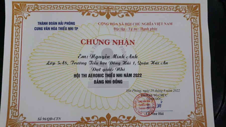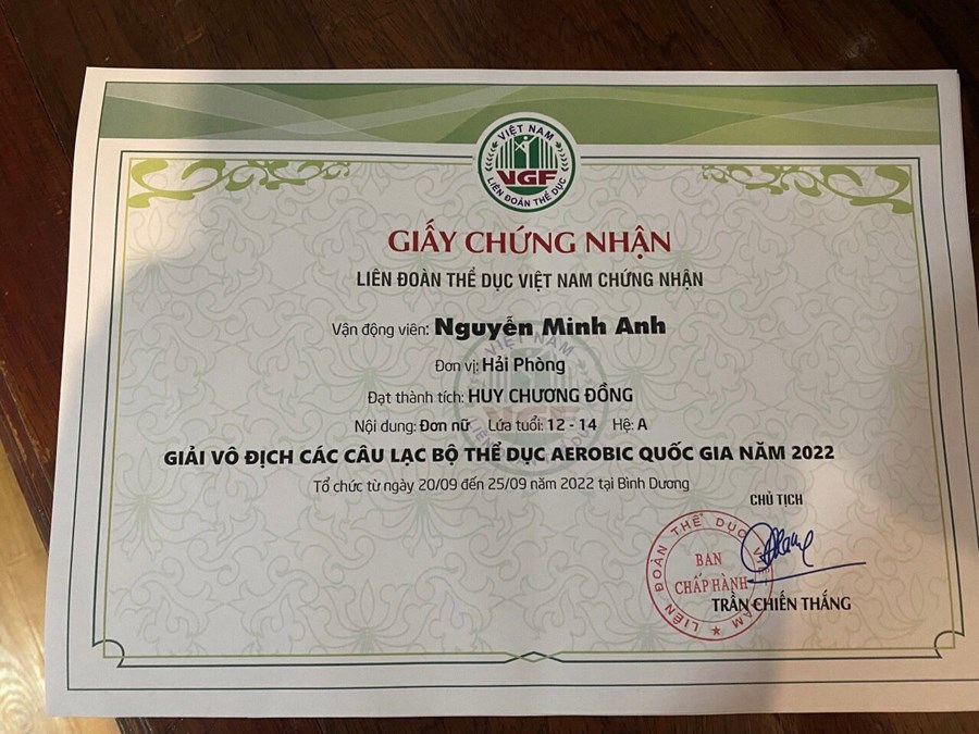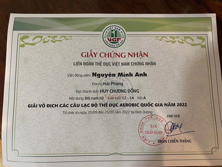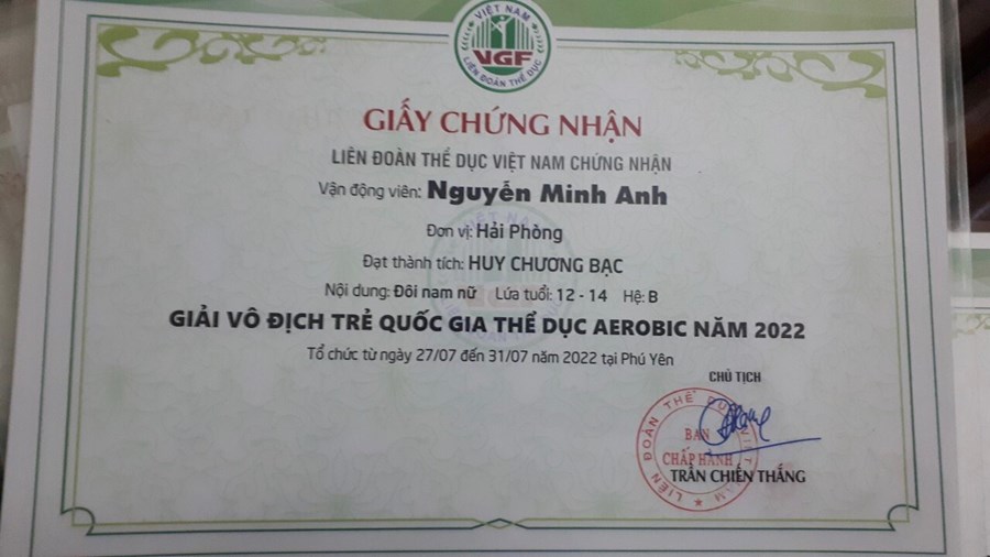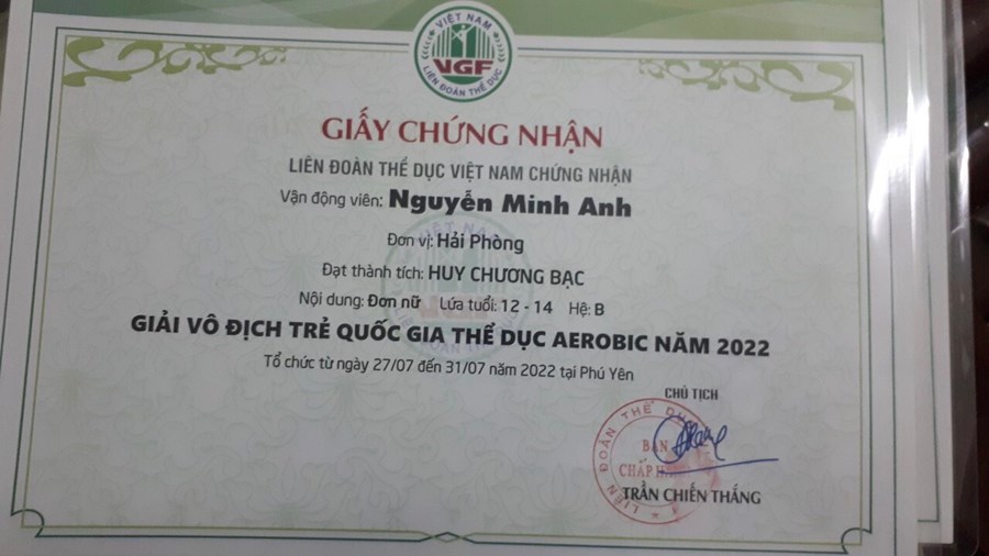 Giải vô địch trẻ quốc gia thể dục Aerobic năm 2022 diễn ra tại Phú Yên từ ngày 27 đến ngày 31 tháng 7 năm 2022 và giải vô địch các câu lạc bộ thể dục Aerobic Quốc gia năm 2022 tại Bình Dương từ ngày 20 đến ngày 25 tháng 9 năm 2022 đã thành công tốt đẹp. Trong đó có sự góp mặt của bạn học trò Nguyễn Minh Anh học sinh lớp 6D2 trường THCS Đông Hải. Với sự cố gắng không ngừng em đã xuất sắc đạt 2 huy chương Đồng nội dung đơn nữ và nội dung đôi nam nữ giải vô địch các câu lạc bộ thể dục Aerobic Quốc gia năm 2022 diễn ra tại Bình Dương. Em đạt 2 huy chương Bạc nội dung đơn nữ, và đôi nam nữ Giải vô địch trẻ quốc gia thể dục Aerobic năm 2022 diễn ra tại Phú Yên. Tham gia sự kiện có các đồng chí là lãnh đạo Liên đoàn thể dục Việt Nam. Chương trình đã để lại ấn tượng tốt đẹp trong lòng những người yêu thể dục thể thao. Các vận động viên đã thi đấu nhiệt tình, hết mình đạt thành tích cao và tiếp tục hứa hẹn những mùa giải thành công tiếp sau nữa.