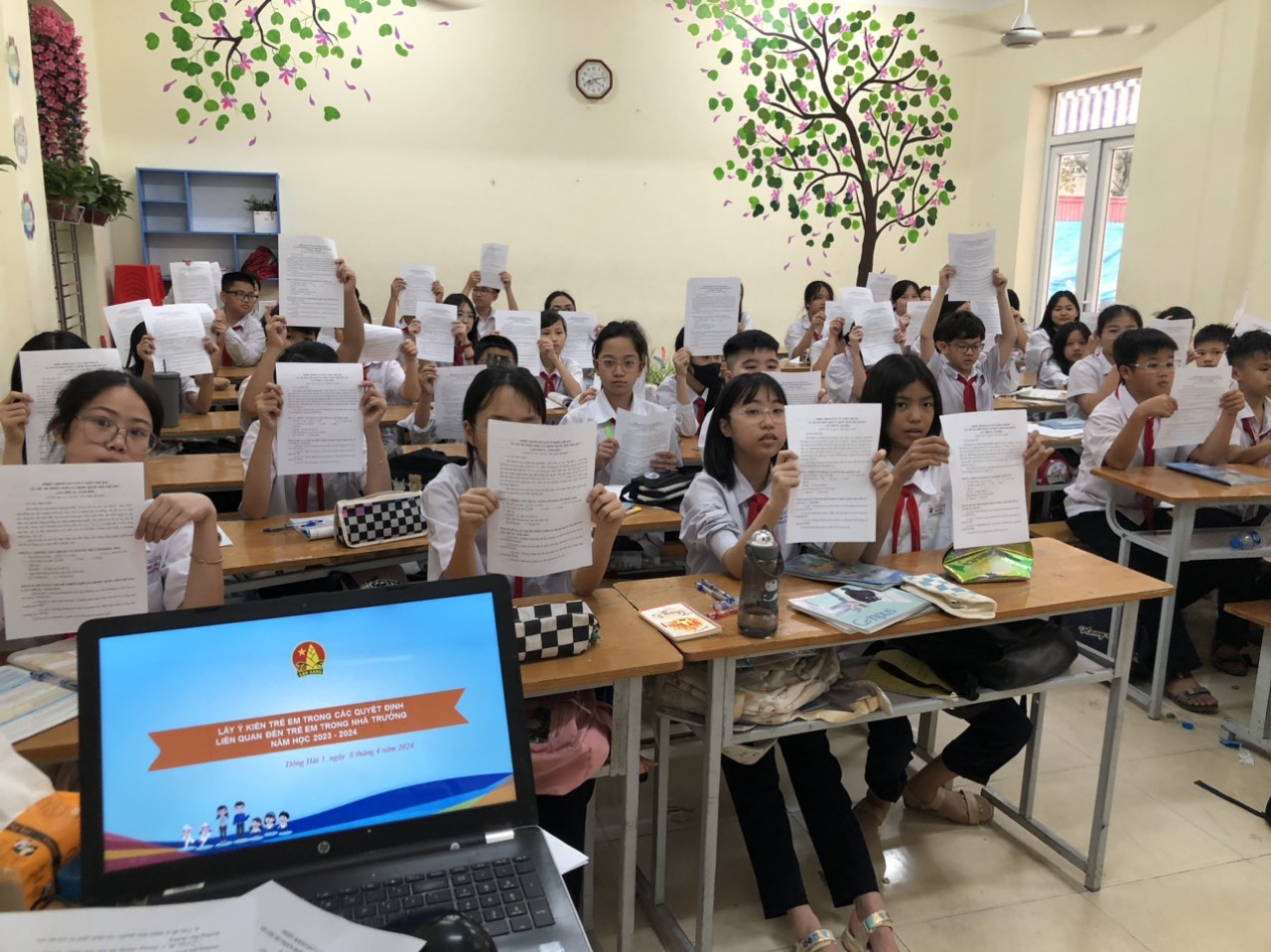 Thực hiện Công văn số 132-CV/HĐĐ ngày 18/3/2024 của Hội đồng Đội thành phố về việc tổ chức lấy ý kiến trẻ em về chủ đề phiên họp giả định Quốc hội trẻ em lần thứ II- năm 2024. Trường THCS Đông Hải tổ chức lấy ý kiến của 100% học sinh các khối lớp 6,7,8,9.