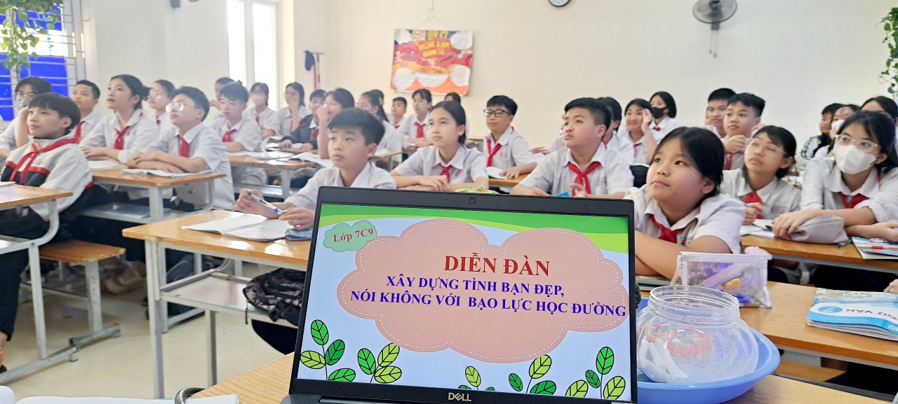 Hiện nay bạo lực học đường đang là một vấn đề vô cùng nhức nhối và ngày càng trở nên đáng lo ngại. Bởi lẽ nó gây ảnh hưởng xấu và có tác động sâu sắc đối với các thế hệ học sinh. Nhận thấy tầm quan trọng của vấn đề này, từ ngày 30/3/2024 đến ngày 6/4/2024, trong tiết ngoài giờ lên lớp các Chi đội thuộc Liên đội trường THCS Đông Hải tổ chức sinh hoạt diễn đàn: "Xây dựng tình bạn đẹp, nói không với bạo lực học đường".