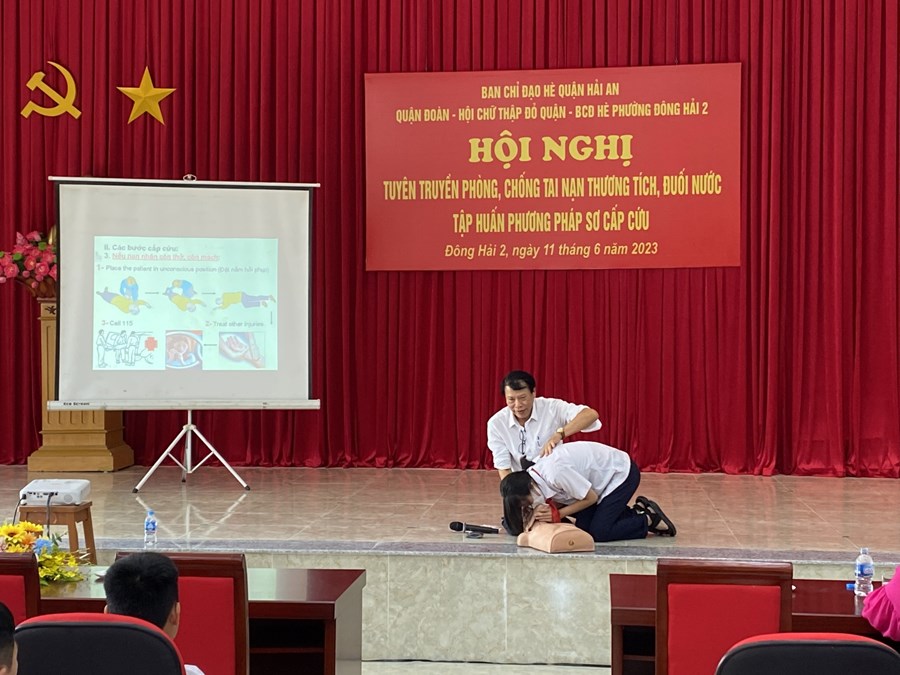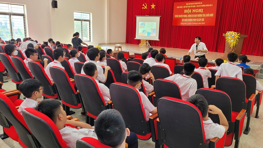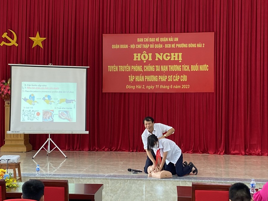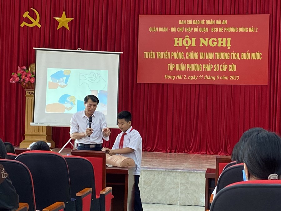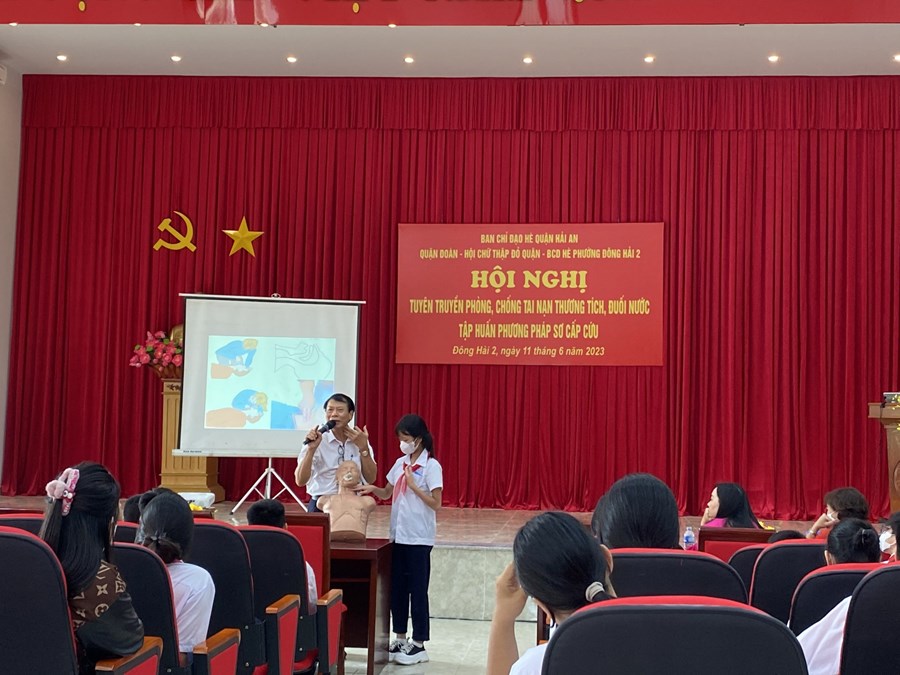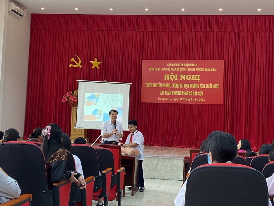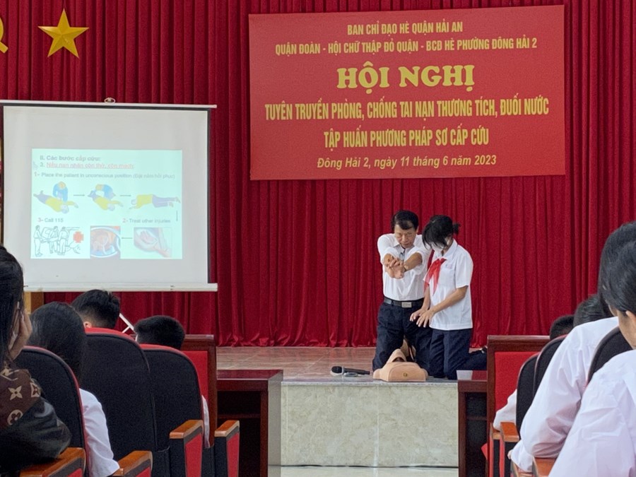 Ngày 10/6/2023 hội nghị tuyên truyền phòng chống tai nạn thương tích, tập huấn kỹ năng sơ cấp cứu đã thu hút các em học sinh trường THCS Đông Hải tham gia rất hứng thú. Bác sĩ Nguyễn Viết Bình - Chuyên khoa 2 gửi tới hội nghị những kiến thức cần thiết về phòng chống tai nạn thương tích, cách sơ cấp cứu khi bị đuối nước, các vấn đề bảo vệ trẻ em khỏi xâm hại.. bằng phương pháp truyền đạt dí dỏm, gần gũi, chương trình đã được các em đón nhận nhiệt tình.