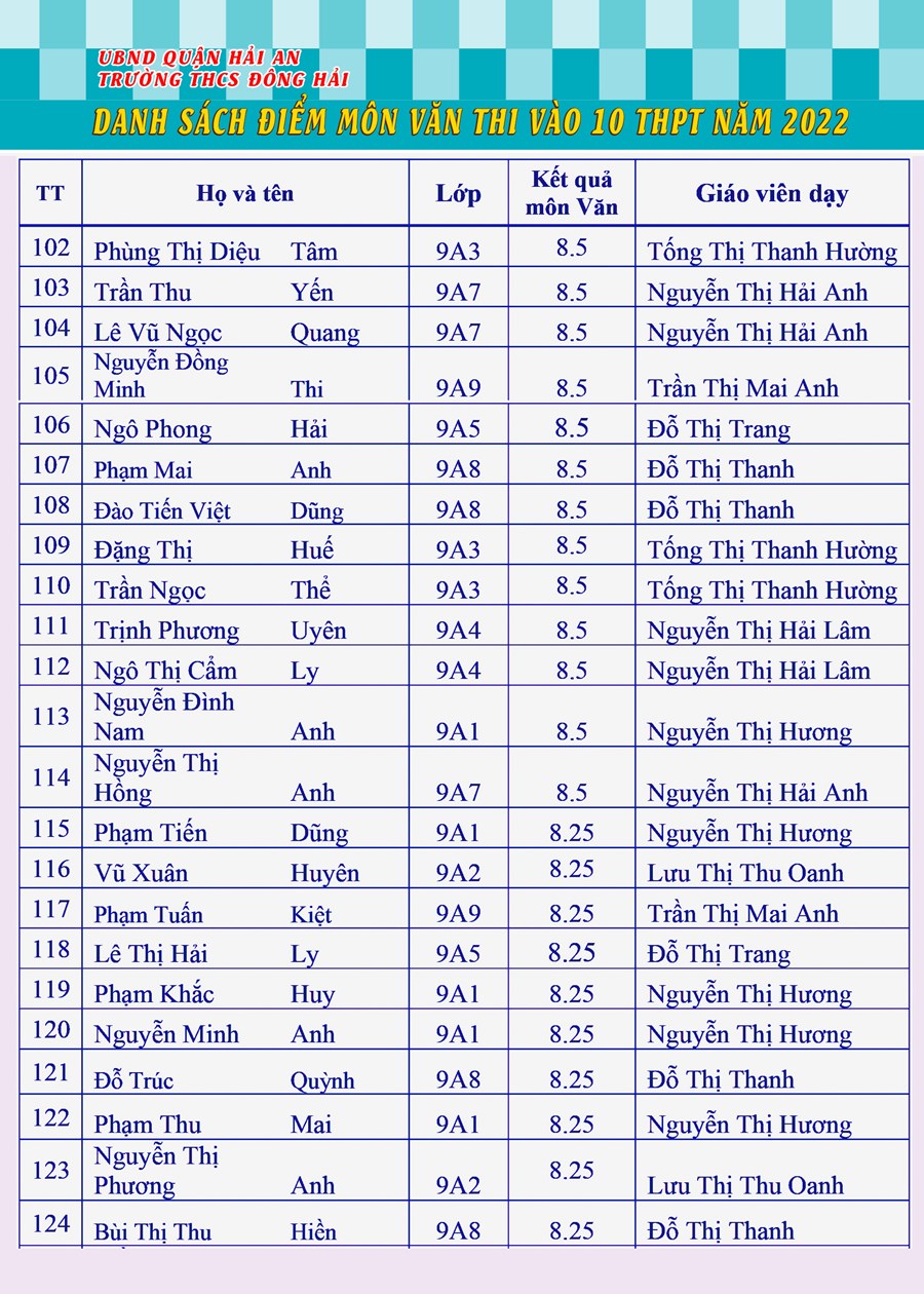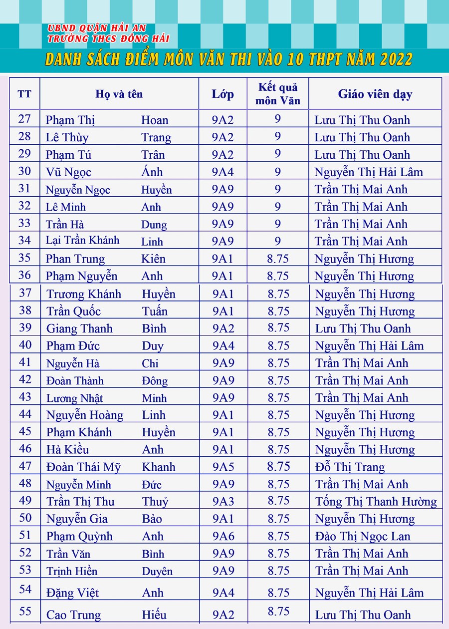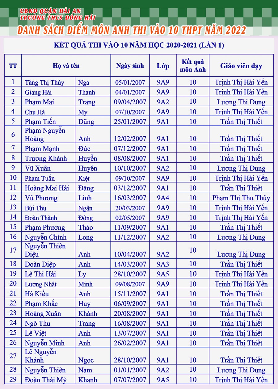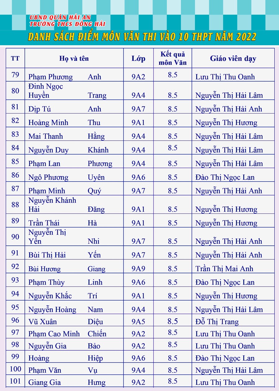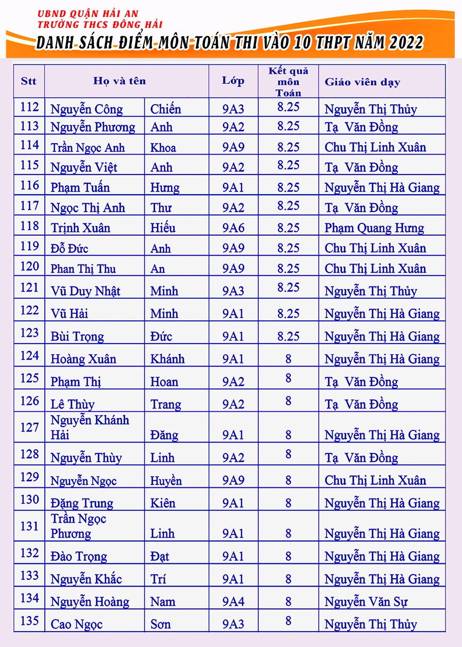Chúc mừng ngành Giáo dục quận Hải An năm thứ 5 liên tiếp dẫn đầu toàn thành phố trong kết quả tuyển sinh vào lớp 10 THPT năm học 2022-2023! Góp vào thành tích rực rỡ này có sự đóng góp đáng kể của thầy và trò trường THCS Đông Hải với những con số thật ấn tượng!