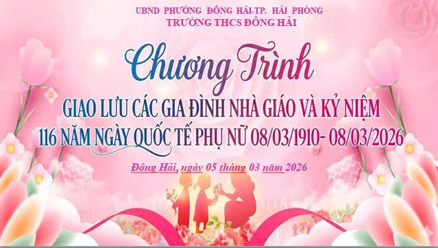 Kỷ niệm 116 năm ngày Quốc tế phụ nữ (08/03/1910 - 08/03/2026) và 27 năm thành lập Hội gia đình nhà giáo ( 08/03/1999 - 08/03/2026), ngày 05/03/2026 Ban giám hiệu, Hội gia đình nhà giáo trường THCS Đông Hải đã long trọng tổ chức hoạt động giao lưu, gặp mặt các gia đình nhà giáo. Tới dự buổi lễ có sự góp mặt đông đủ các của các thành viên là dâu, rể và các con của đại gia đình THCS Đông Hải thân yêu. Đây là một hoạt động vô cùng ý nghĩa nhằm kết chặt tình thân ái, yêu thương, gắn kết, sẻ chia giữa các gia đình nhà giáo và cũng là dịp để tôn vinh, động viên, khích lệ các cán bộ - giáo viên- nhân viên lao động nữ của nhà trường, qua đó khẳng định vị trí, vai trò ngày càng quan trọng của chị em đối với gia đình, xã hội và đất nước trong thời kỳ phát triển, hội nhập. Chúc các chị em luôn trẻ khoẻ, xinh đẹp, hạnh phúc, gặt hái thật nhiều thành công, giữ vững danh hiệu “ Nữ giáo viên giỏi việc trường- đảm việc nhà”!