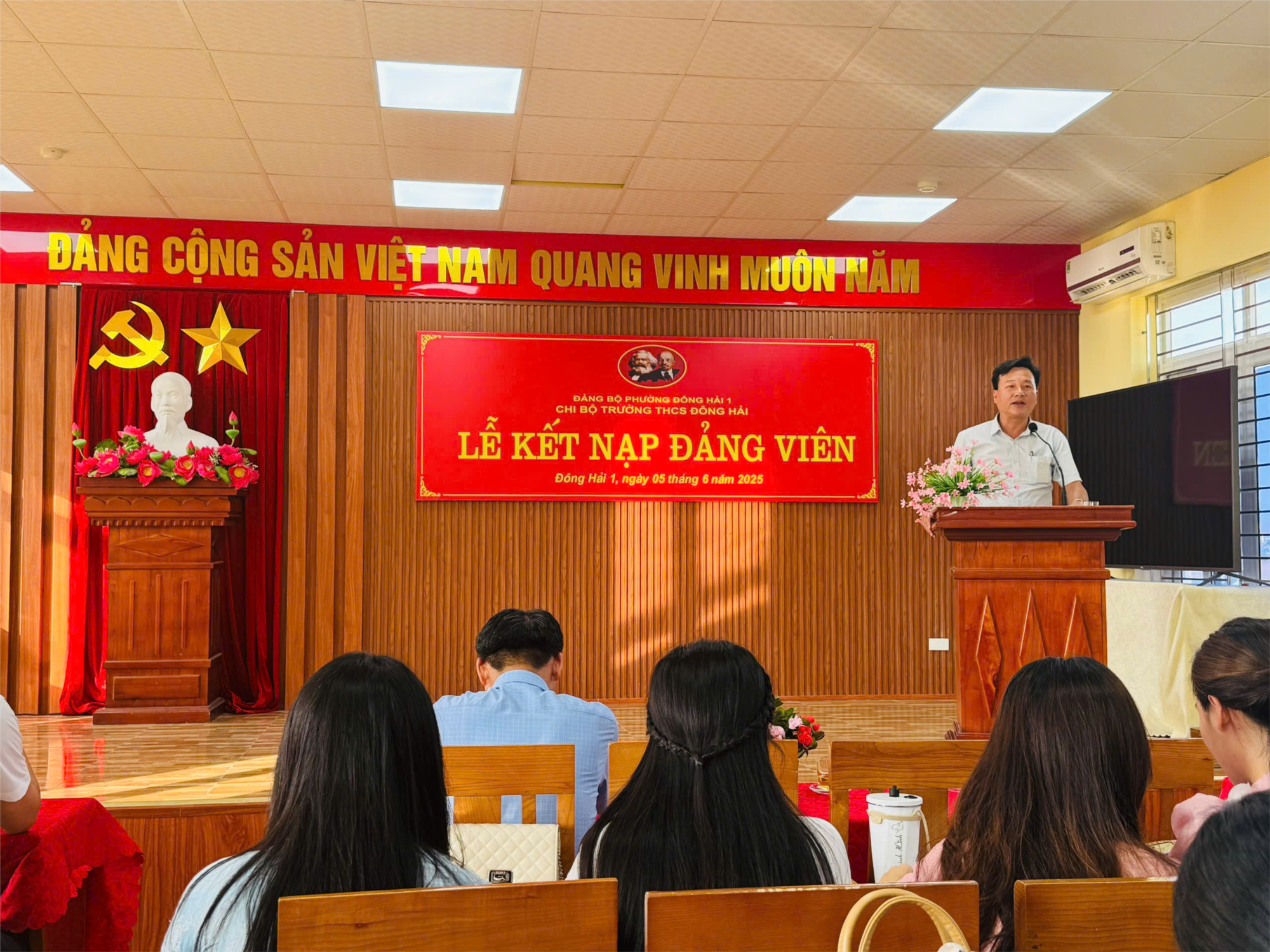 Căn cứ vào Điều lệ Đảng Cộng sản Việt Nam. Xét đơn xin vào Đảng của các quần chúng ưu tú : Đặng Thị Hằng, Đỗ Khánh Linh, Phạm Thị Minh Anh, Nguyễn Thanh Diễm Quỳnh, Nguyễn Bá Khánh, Trần Cao Anh, Nguyễn Thị Thu Dung - Giáo viên trường THCS Đông Hải . Ngày 05 tháng 06 năm 2025 Chi bộ trường THCS Đông Hải đã tổ chức kết nạp cho bảy quần chúng ưu tú trên vào Đảng Cộng sản Việt Nam.