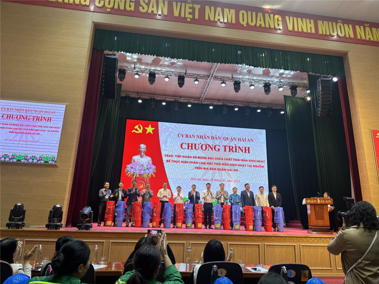 🍀Sáng 18/1, UBND quận Hải An tổ chức Chương trình trao, tiếp nhận xô đựng rác chứa chất thải rắn sinh hoạt để thực hiện phân loại rác thải rắn sinh hoạt tại nguồn trên địa bàn quận Hải An. Tới dự có các đồng chí: Dương Đình Ổn-PBT- CT UBND quận, Nguyễn Văn Tuấn- PCTTT UBND quận, đại diện lãnh đạo Sở tài nguyên và môi trường thành phố, các đồng chí Bí thư Đảng ủy, Chủ tịch UBND, các đồng chí Bí thư, tổ trưởng các TDP, lãnh đạo các nhà trường trên địa bàn quận.