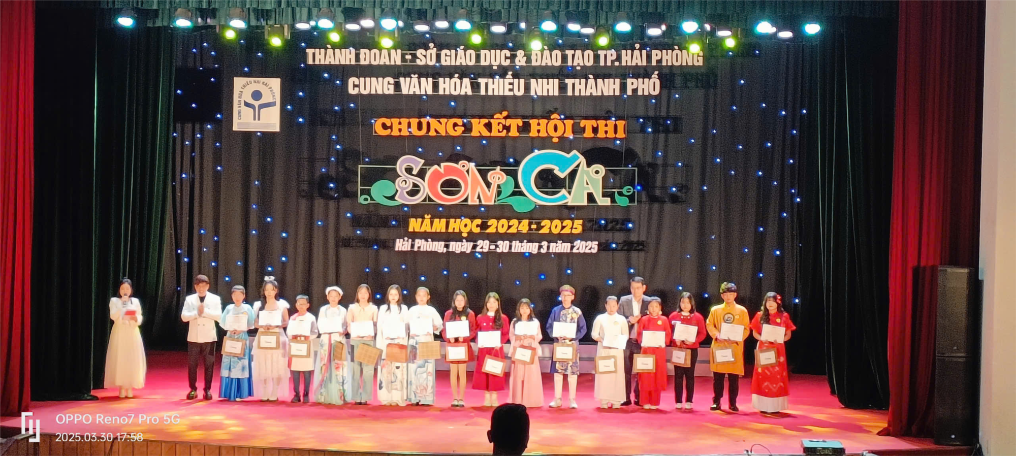 Ngày 30/3/2025, tại cung văn hoá thiếu nhi thành phố Hải Phòng đã diễn ra chung kết hội thi sơn ca với 163 chú chim sơn ca đến từ các trường tiểu học, THCS trong thành phố. Trường THCS Đông Hải có 2 em học sinh được chọn từ vòng thi cấp Quận để dự thi: em Bùi Nguyễn Hoàng Dung lớp 8B5 đạt giải nhì với bài hát "Son" và em Trần Ngọc Linh Nhi lớp 7C9 đạt giải Ba với bài hát "Độc huyền cầm". Hội thi là dịp để các em thể hiện tài năng ca hát, sự tự tin, bản lĩnh sân khấu. Chúc các em sẽ bay cao và bay xa hơn nữa để trưởng thành và gặt hái được nhiều thành công!