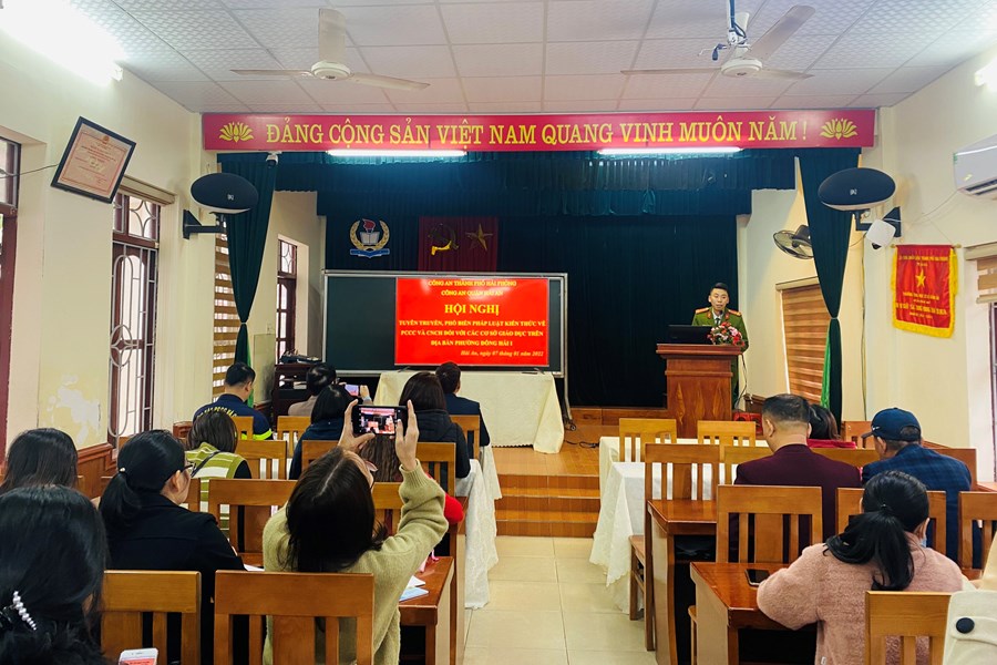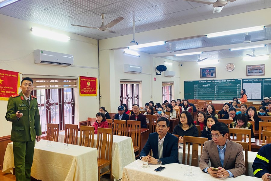 🔥 Tại buổi tập huấn, Thượng uý Hoàng Duy Tùng - công an PCCC quận Hải An đã lên lớp giảng dạy và tuyên truyền các nội dung về PCCC.