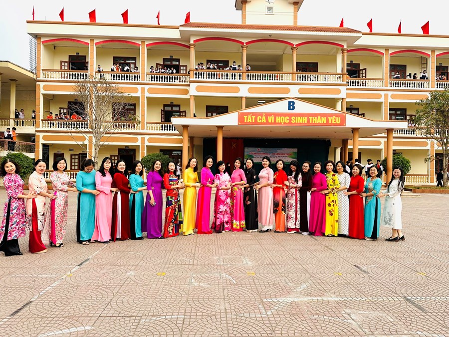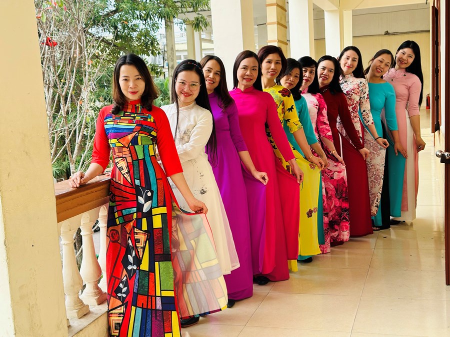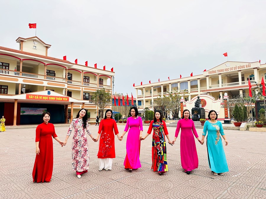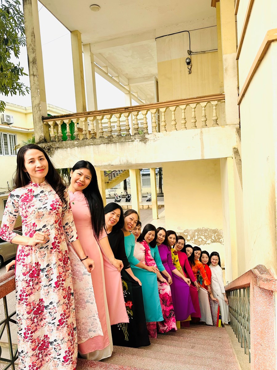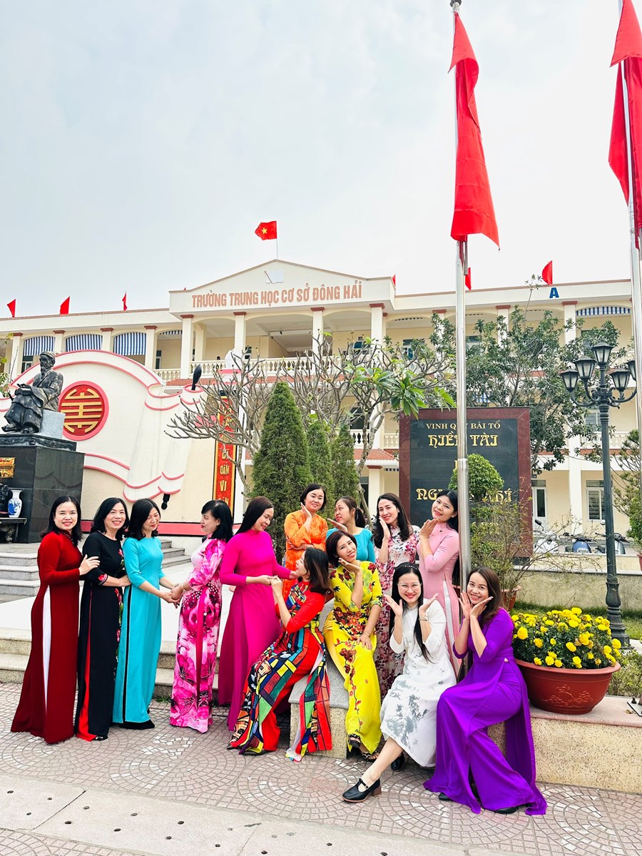 Hưởng ứng “Tuần lễ áo dài Việt Nam năm 2023”, từ ngày 6- 11/3/2023 Công đoàn Trường THCS Đông Hải- Quận Hải An- Hải Phòng phát động nữ đoàn viên công đoàn mặc áo dài đến trường. Áo dài là nét đẹp truyền thống mang biểu tượng của đất nước Việt Nam thân yêu. Dù là người phụ nữ nông dân chất phác, là cán bộ công chức, là doanh nhân, là lãnh đạo cấp cao hay phu nhân các nguyên thủ quốc gia thì khi khoác lên mình chiếc áo dài truyền thống đều cảm thấy tự tin, kiêu hãnh, tràn đầy lòng tự hào và tinh thần dân tộc mạnh mẽ. Để góp phần lan tỏa việc bảo tồn và phát huy những giá trị tốt đẹp của chiếc áo dài truyền thống và nhiệt liệt hưởng ứng “ Tuần lễ áo dài năm 2023”, tập thể nữ cán bộ - giáo viên nhà trường cùng nhau mặc những chiếc áo dài xinh xắn, rực rỡ, thướt tha đến trường.Qua hoạt động này vừa góp phần tôn vinh vẻ đẹp truyền thống Việt, thể hiện lòng yêu nghề, mến trẻ của các thầy cô, vừa giáo dục cho học sinh lòng tôn quý cái đẹp và ý thức giữ gìn, phát huy nét đẹp văn hóa bản sắc, truyền thống của dân tộc.