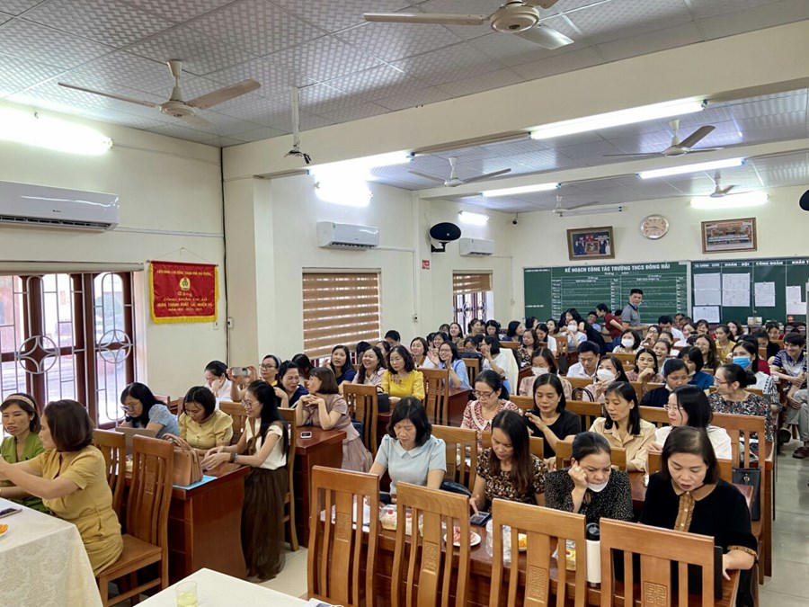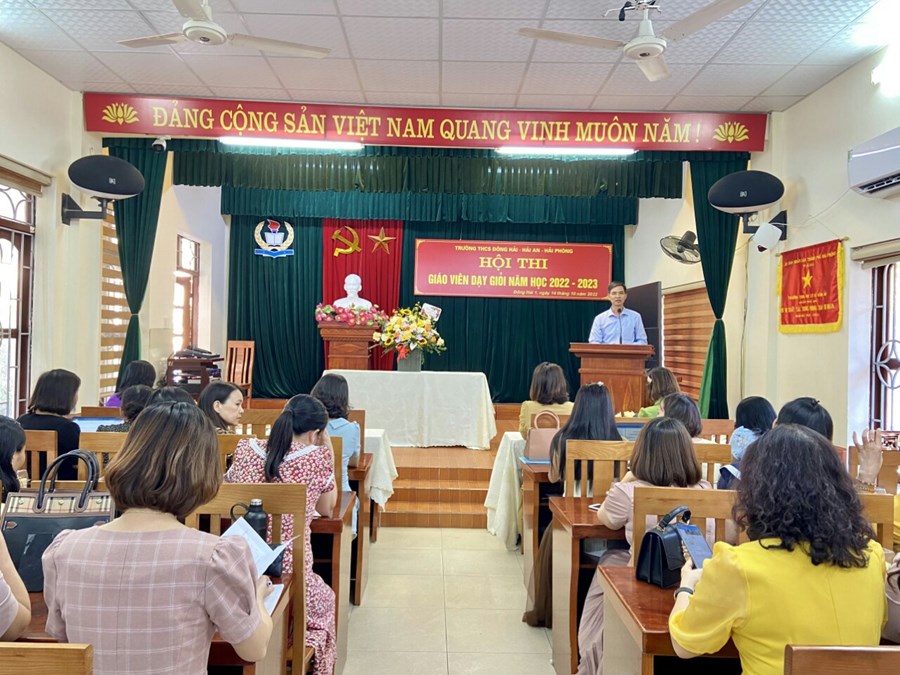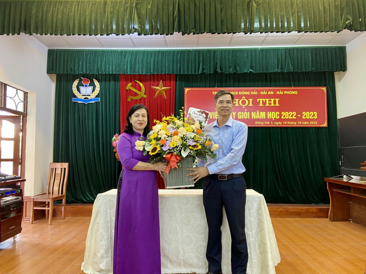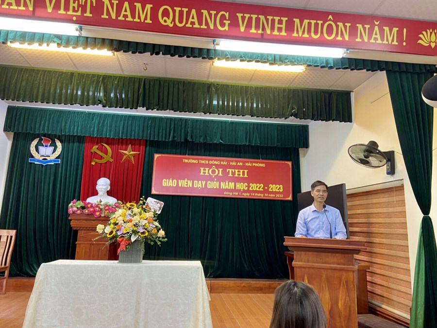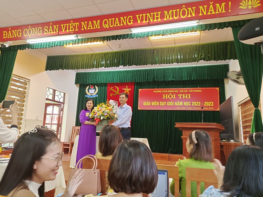 Ngày 15 tháng 10 năm 2022, Trường THCS Đông Hải - quận Hải An tổ chức lễ tổng kết Hội thi giáo viên giỏi cấp trường năm học 2022-2023 và mít tinh kỷ niệm 92 năm ngày thành lập Hội liên hiệp phụ nữ Việt Nam (20/10/1930-20/10/2022). Đồng chí Phạm Hồng Khánh - Bí thư chi bộ, Hiệu trưởng nhà trường và các đồng chí nam giáo viên trân trọng gửi tới các đồng chí nữ cán bộ - giáo viên- công nhân viên nhà trường những bông hoa tươi thắm cùng lời chúc sức khỏe, xinh đẹp, hạnh phúc, thành công, luôn là những “nữ giáo viên giỏi việc nước- đảm việc nhà”!