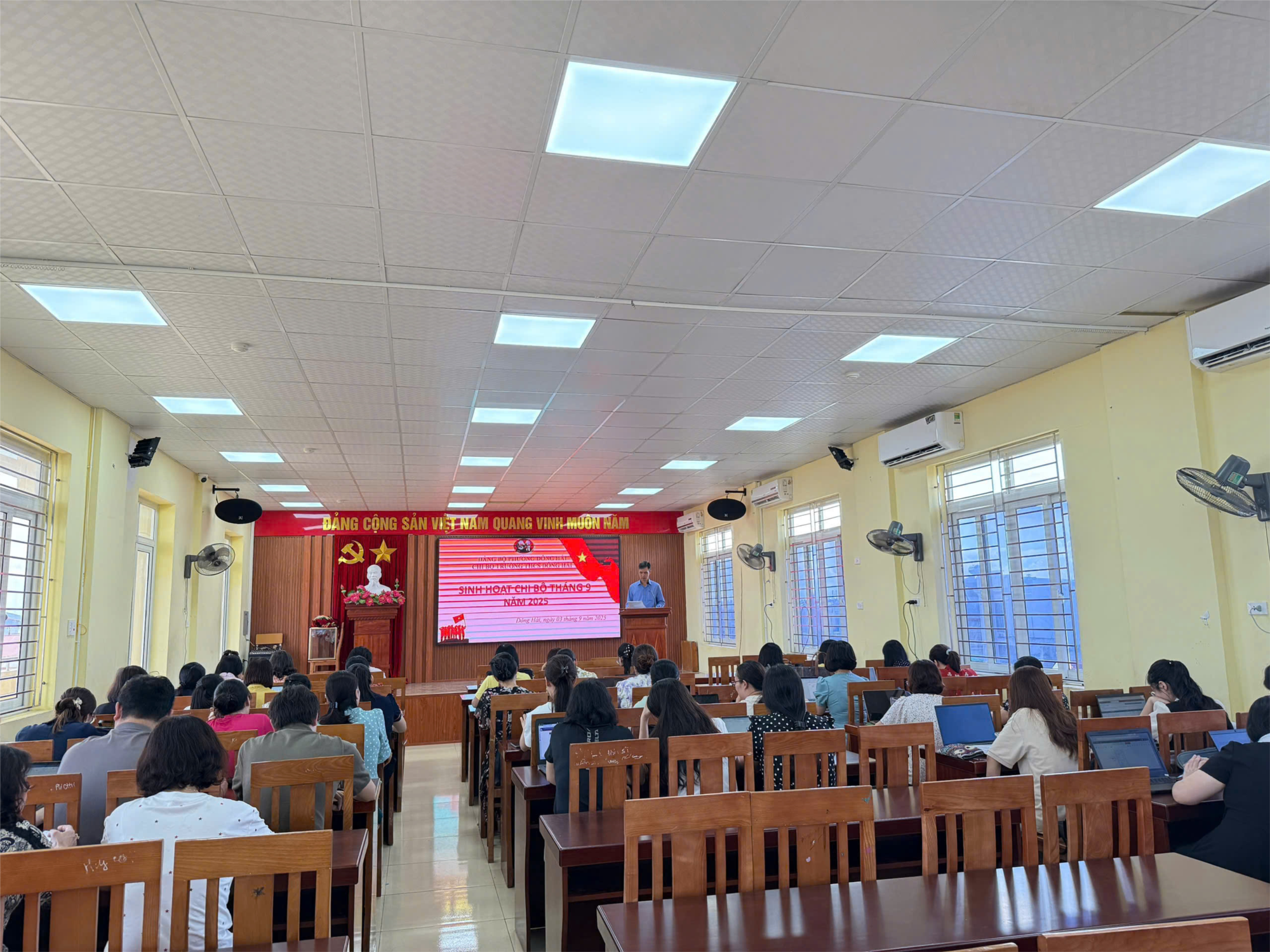 Thực hiện kế hoạch công tác tháng 9 năm học 2025-2026, sáng ngày 3/9/2025, Chi bộ Trường THCS Đông Hải tổ chức sinh hoạt chi bộ. Đồng chí Phạm Hồng Khánh - Bí thư Chi bộ, Hiệu trưởng nhà trường chủ trì và chỉ đạo cuộc họp.