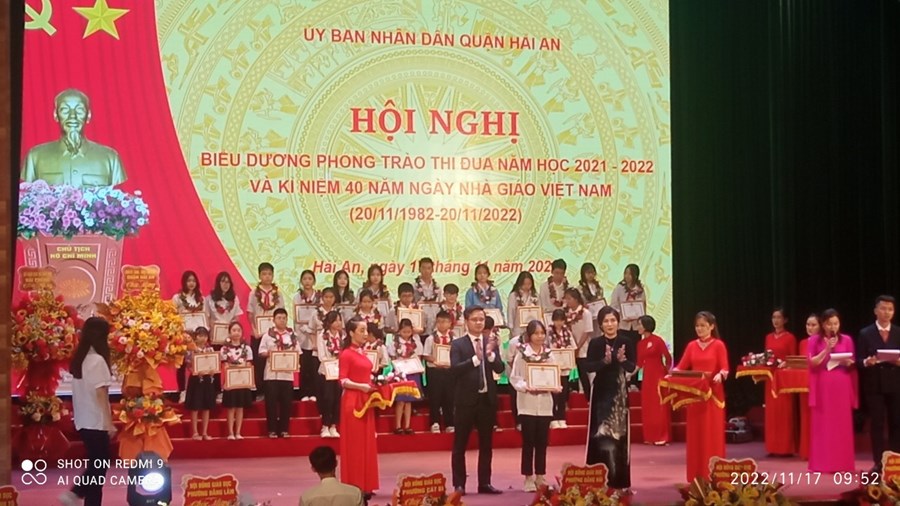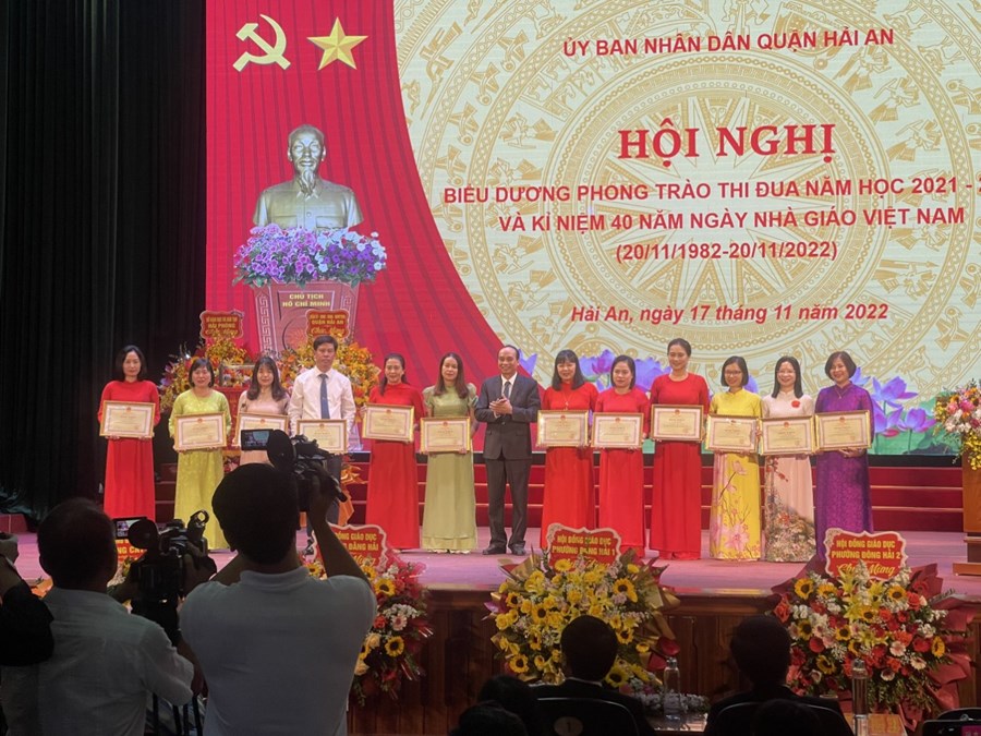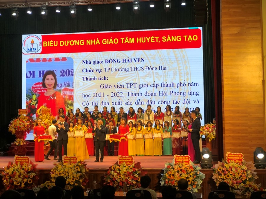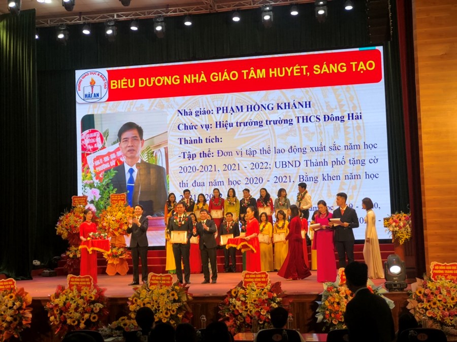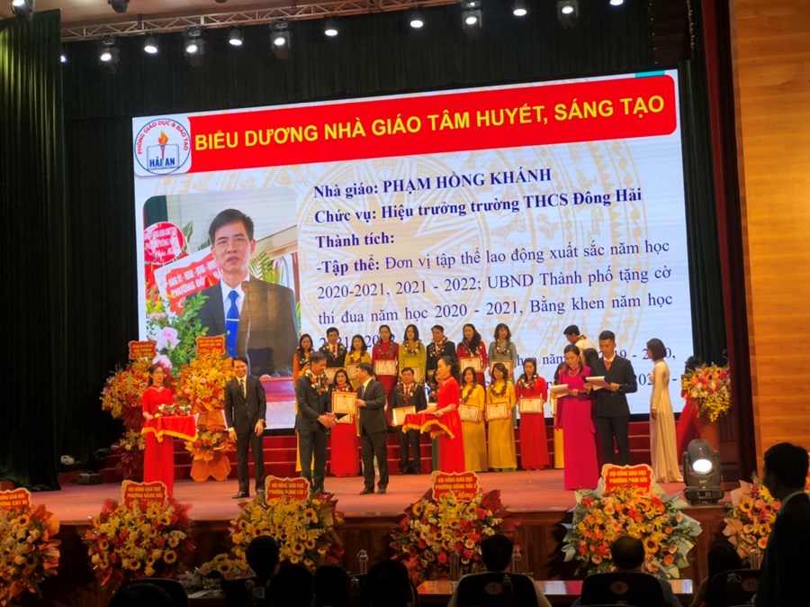 Ngày 17/11/2022, Trường THCS Đông Hải tham dự hội nghị biểu dương phong trào thi đua năm học 2021-2022 và kỷ niệm 40 năm ngày nhà giáo Việt Nam (20/11/1982-20/11/2022). Trong chương trình trường THCS Đông Hải vinh dự được nhận bằng khen của chủ tịch ủy ban nhân dân thành phố đã hoàn thành xuất sắc nhiệm vụ công tác từ năm học 2020-2021 đến năm học 2021-2022; Chủ tịch ủy ban nhân dân thành phố tặng nhà trường danh hiệu tập thể lao động xuất sắc. Thầy giáo Phạm Hồng Khánh – Hiệu trưởng và cô giáo Đồng Hải Yến – Tổng phụ trách được vinh danh “Nhà giáo tâm huyết sáng tạo”. Cô giáo Trần Thị Thắng, Đỗ Thái Mỹ, Lưu Thị Thu Oanh, Nguyễn Thị Hà Giang được nhận bằng khen của Bộ Giáo dục & đào tạo. Cô giáo Nguyễn Thị Ngọc Huyền được nhận giấy khen của Ủy ban nhân dân thành phố. Cô giáo Nguyễn Thị Kim Tuyết được nhận giấy khen ủy ban nhân dân quận. Cùng 8 em học sinh đạt giải cao cấp thành phố, các em đỗ thủ khoa, á khoa, tam khoa trong kỳ thi vào lớp 10 trường THPT chuyên Trần Phú, THPT Thái Phiên được biểu dương khen thưởng.
