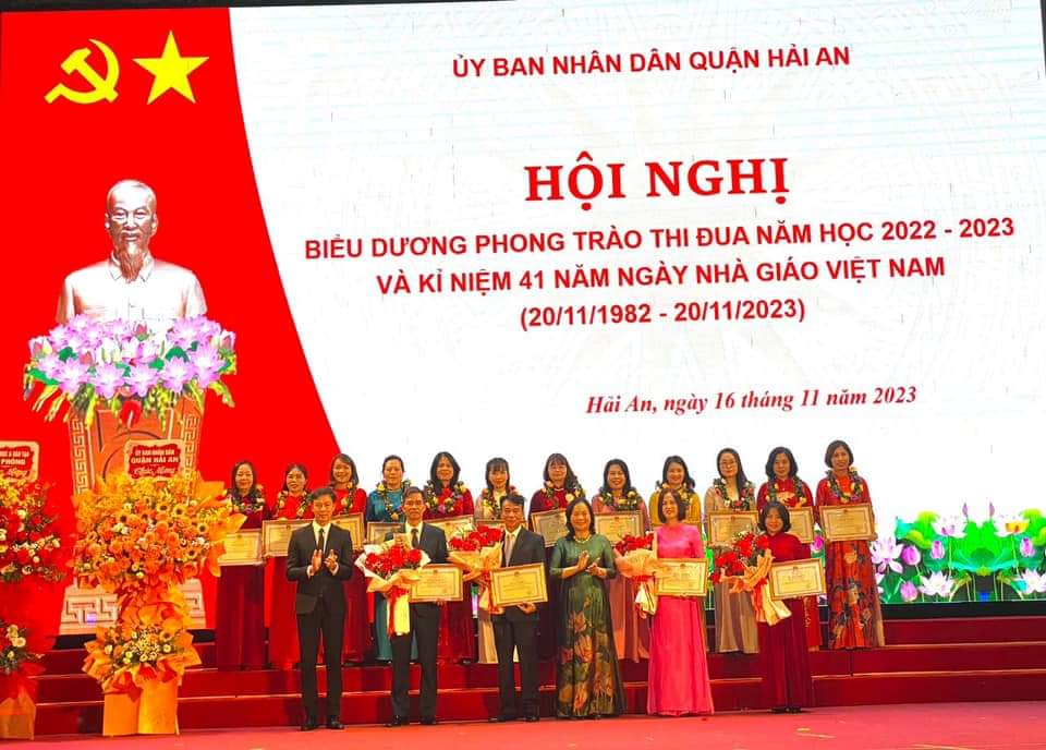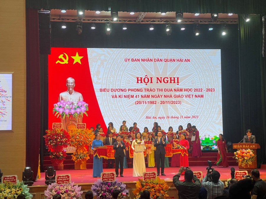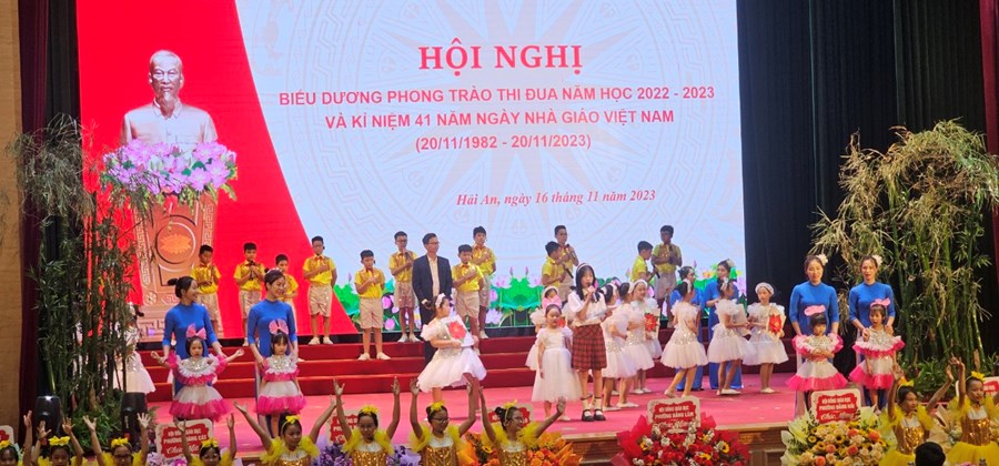 Chiều 16/11/2023, quận Hải An tổ chức hội nghị biểu dương phong trào thi đua năm học 2022 – 2023 và kỷ niệm 41 năm Ngày Nhà giáo Việt Nam (20/11/1982-20/11/2023). Tới dự có các đồng chí Đỗ Thị Hòa- PGĐ Sở giáo dục và đào tạo thành phố, Trần Văn Thắng- Chủ tịch công đoàn giáo dục và đào tạo thành phố Nguyễn Văn Tuấn- TUV- BTQU- CT HĐND quận, Dương Đình Ổn- PBT- CT UBND quận, các đồng chí PCT HĐND, UBND, các đồng chí UVBTVQU, trưởng các ban, ngành, đoàn thể, các phòng ban chuyên môn của quận, lãnh đạo Đảng ủy, HĐND, UBND các phường trên địa bàn quận cùng các thầy, cô giáo tiêu biểu trong quận.