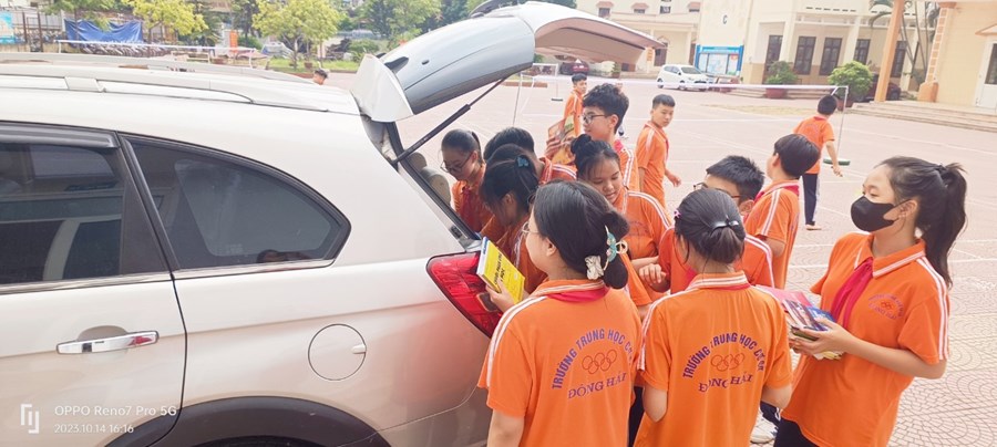 Từ ngày 6/10-23/10/2023, liên đội trường THCS Đông Hải triển khai 48 chi Đội đồng loạt thực hiện mô hình thư viện 50k. Mỗi Chi đội một giá sách bày biện khoa học, hợp lý, xinh xắn, phù hợp với diện tích lớp học. Mỗi học sinh đóng góp 1 quyển sách (truyện) có ý nghĩa vào giá sách của Chi Đội.