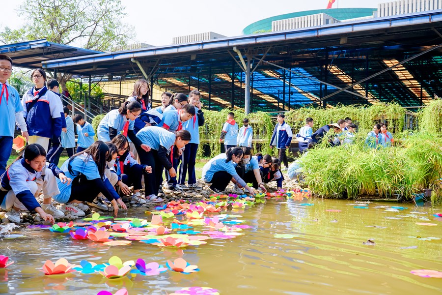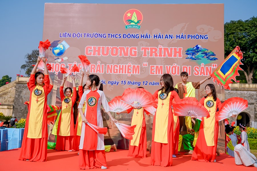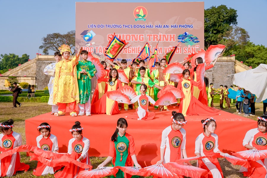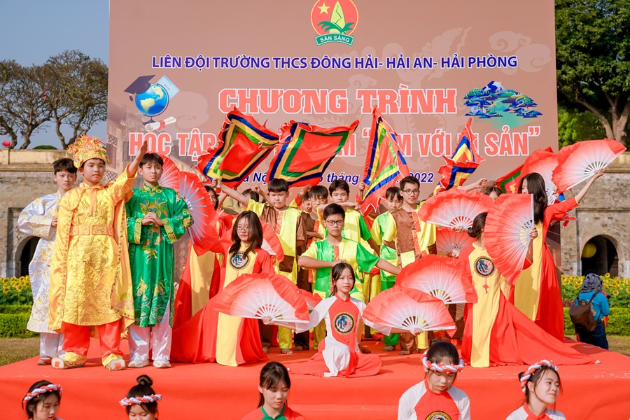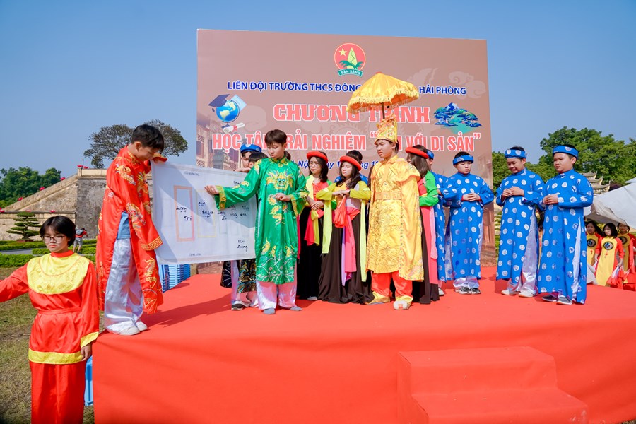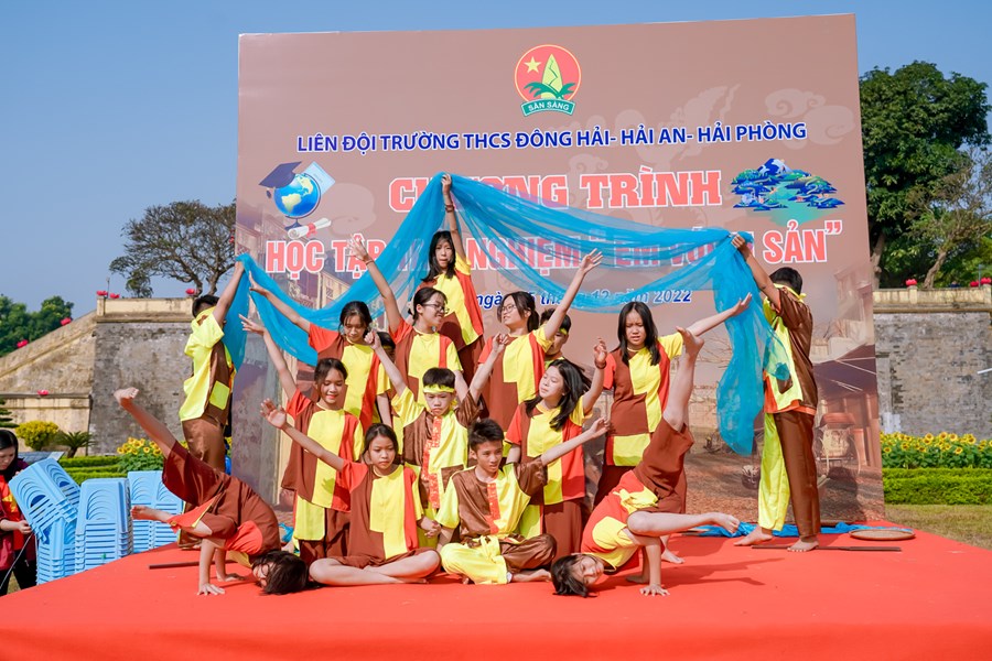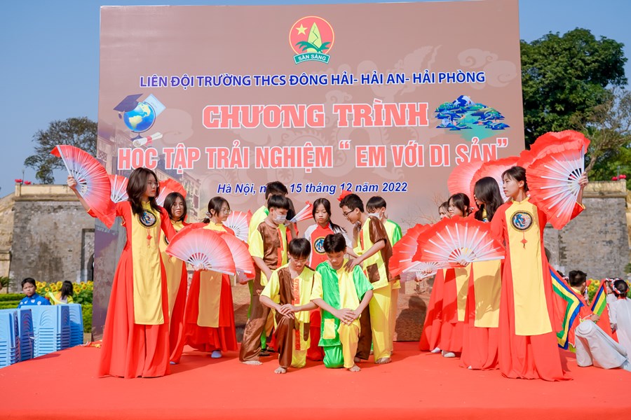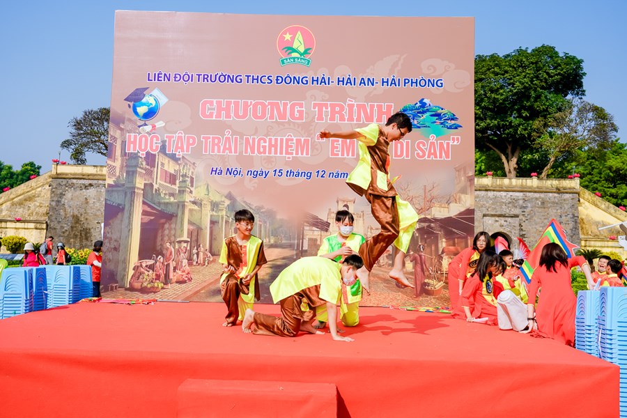 Ngược dòng thời gian tìm hiểu về lịch sử cội nguồn dân tộc, thầy trò trường THCS Đông Hải trở về mảnh đất linh thiêng, học tập và trải nghiệm tại Hoàng Thành Thăng Long Hà Nội. Nơi đây là quần thể di tích của kinh thành Thăng Long xưa gắn với lịch sử hào hùng hàng nghìn năm dựng nước và giữ nước của dân tộc ta. Một công trình kiến trúc đồ sộ được xây dựng qua nhiều thời kỳ và trở thành di tích lịch sử quan trọng bậc nhất trong các di tích Việt Nam, được công nhận là di sản văn hóa thế giới. Ngày 15/12/2022 các em học sinh khối 7 trong toàn trường đã có 1 ngày học tập, trải nghiệm cực kỳ bổ ích và thích thú. Chặng 1 với chủ đề “Chúng em hành quân theo bước chân những người anh hùng” các em được tìm hiểu khám phá kiến thức về điểm đến Hoàng Thành Thăng Long. Chặng 2 với tên gọi “Nhà sử học nhỏ tuổi” thầy trò nhà trường cùng làm lễ dâng hương, dâng văn, hát Quốc ca và giao lưu cùng giáo sư sử học Lê Văn Lan. Chặng 3 với tên gọi “Hôm nay là đội viên, ngày mai là đoàn viên” các em được tham quan Kỳ Đài, Đoan Môn, Thềm Rồng đá điện Kính Thiên, di tích cách mạng nhà D67, Hậu Lâu, Bắc Môn… Trải nghiệm làm đèn Hoa Đăng và gói bánh chưng. Chặng 4 “Tự hào trang sử” các em được tham quan bảo tàng quân sự Việt Nam. Chặng 5: “Học tập tốt, rèn luyện chăm” tại sân Đoan Môn các em tham gia hoạt náo, báo cáo sản phẩm trải nghiệm thuyết trình sơ đồ tư duy, tiết mục “Hào khí Việt Nam”- Hoạt cảnh vua Lý Công Uẩn dời Đô từ Hoa Lư về Thành Đại La - múa “Dòng máu Lạc Hồng”, thi rung chuông vàng và nhảy dân vũ. Cuối chương trình là hội chợ 36 phố phường. Chương trình học tập trải nghiệm tại Hoàng Thành Thăng Long một lần nữa đã khẳng định được nội dung giáo dục học sinh với tên gọi “Em yêu lịch sử Việt Nam”, hướng các em về cội nguồn dân tộc để luôn yêu đất nước mình! Phấn đấu thật nhiều trong học tập và rèn luyện!
