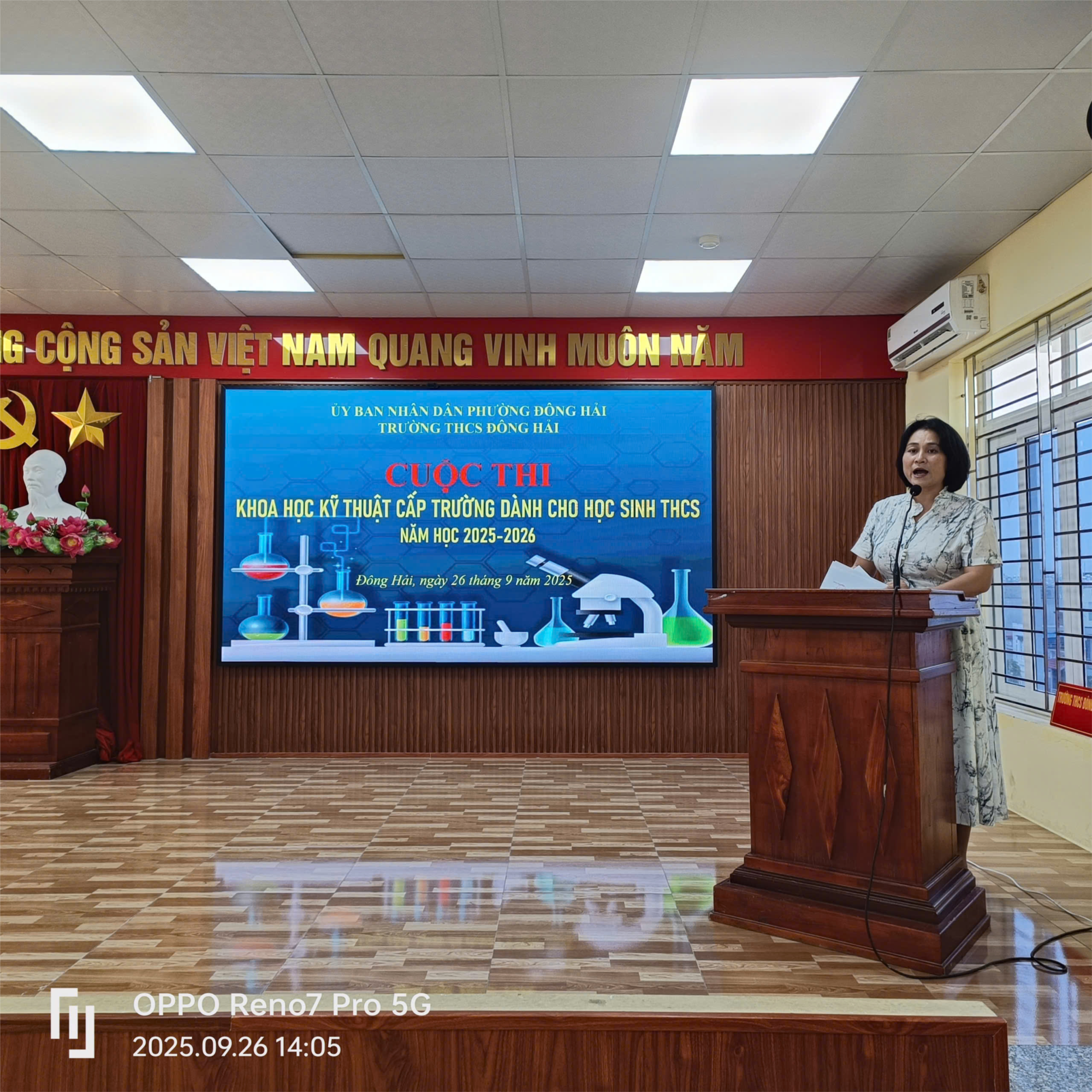 Ngày 25/9/2025, trường THCS Đông Hải tổ chức hội thi Khoa học kỹ thuật cấp trường năm học 2025-2026. Triển khai giáo dục về khoa học, công nghệ, kĩ thuật và toán (STEM) trong các trường phổ thông theo Chỉ thị số 16/CT-TT ngày 04/5/2017 của Thủ tướng Chính phủ. Tham dự hội thi có thày giáo Phạm Hồng Khánh- Hiệu trưởng nhà trường, cô giáo Trần Thị Thắng- Phó hiệu trưởng nhà trường. Các thầy cô giáo là thành viên BGK, các thầy cô giáo là giáo viên hướng dẫn cùng toàn thể các em học sinh là thành viên của các dự án dự thi. Tham dự cuộc thi có 10 dự án của các học sinh đến từ tất cả các khối lớp 8,9 trong nhà trường thuộc các lĩnh vực: Khoa học tự nhiên, Khoa học xã hội hành vi...Qua cuộc thi này, ngoài việc được thể hiện khả năng nghiên cứu khoa học của mình, thì đây cũng là dịp để các em thể hiện khả năng thuyết trình bảo vệ ý tưởng. Nhiều báo cáo chuẩn bị công phu, trình bày lưu loát, thuyết phục được hội đồng khoa học nhà trường và khán giả tham dự cuộc thi.