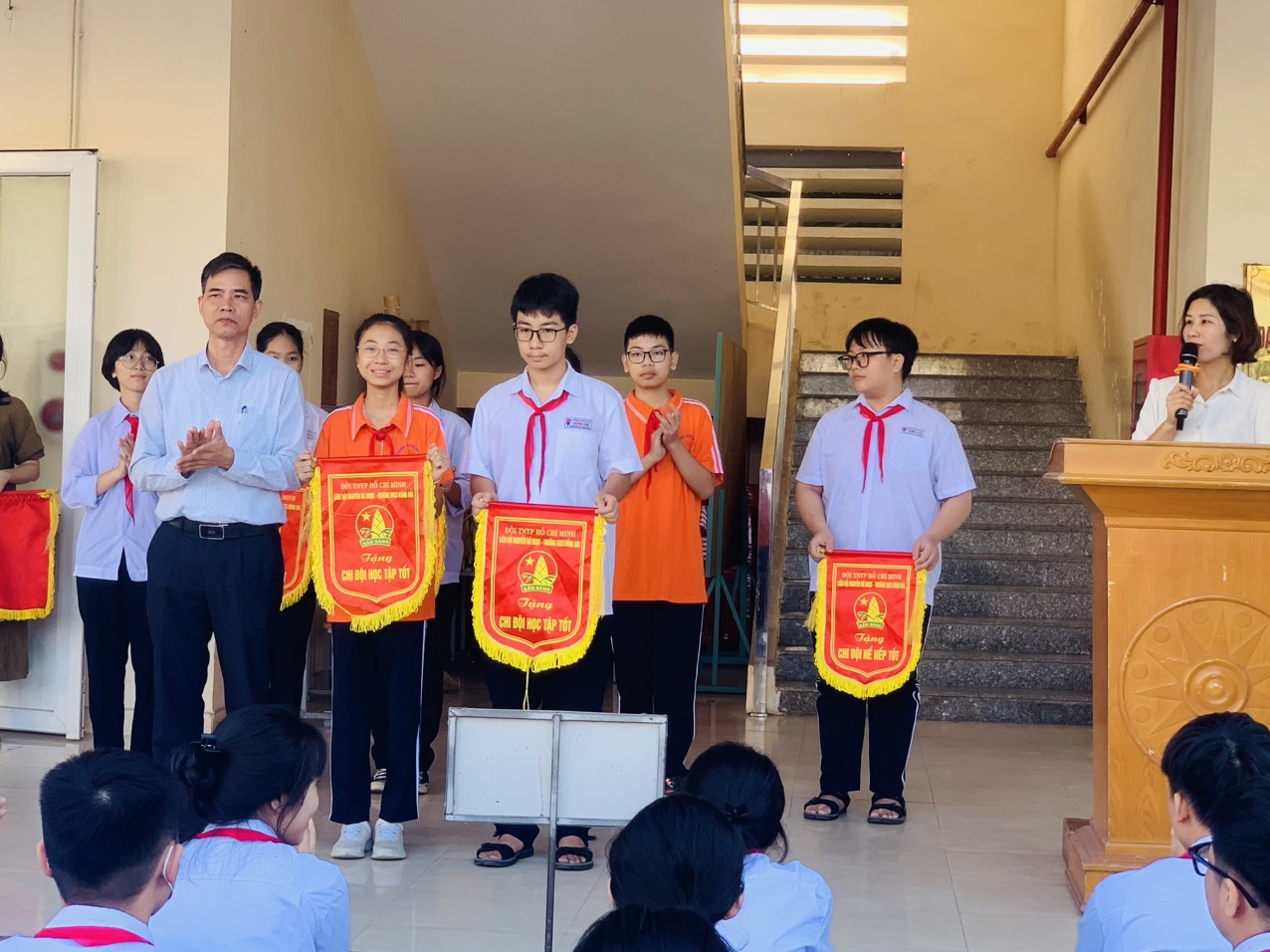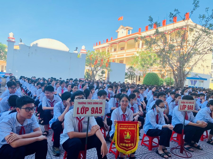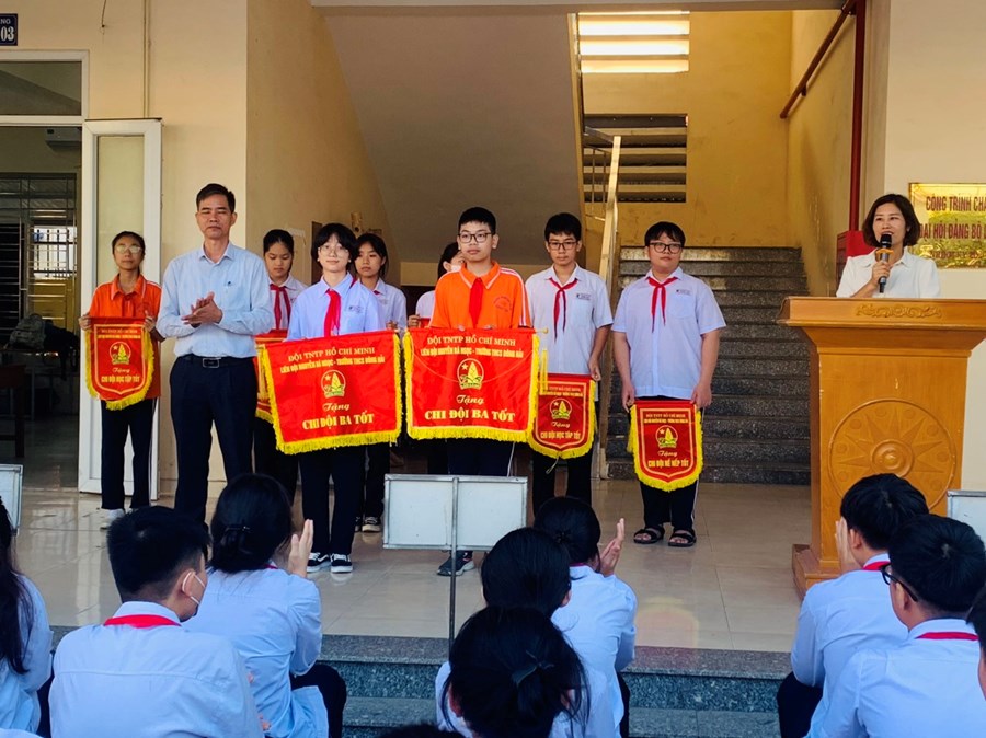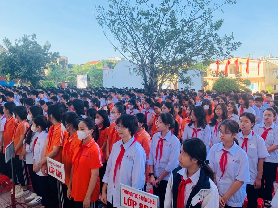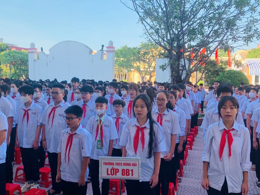 Ngày 09/10/2023, trường THCS Đông Hải tổ chức lễ chào cờ tháng 10. Tham dự chương trình có BGH, TPT, cùng toàn thể 48 giáo viên chủ nhiệm và 2261 em học sinh toàn trường. Trong chương trình các em được nghe đánh giá tháng 9, triển khai phương hướng tháng 10. Đã có 16 chi đội xuất sắc tiêu biểu đứng đầu các phong trào học tập tốt, nề nếp tốt, phong trào tốt, chi đội 3 tốt được biểu dương nhận cờ thi đua tháng 9. Thầy giáo Phạm Hồng Khánh- hiệu trưởng nhà trường nhắc nhở, động viên các em tiếp tục cố gắng nhiều hơn để đạt kết quả cao trong tháng 10.
