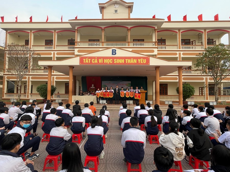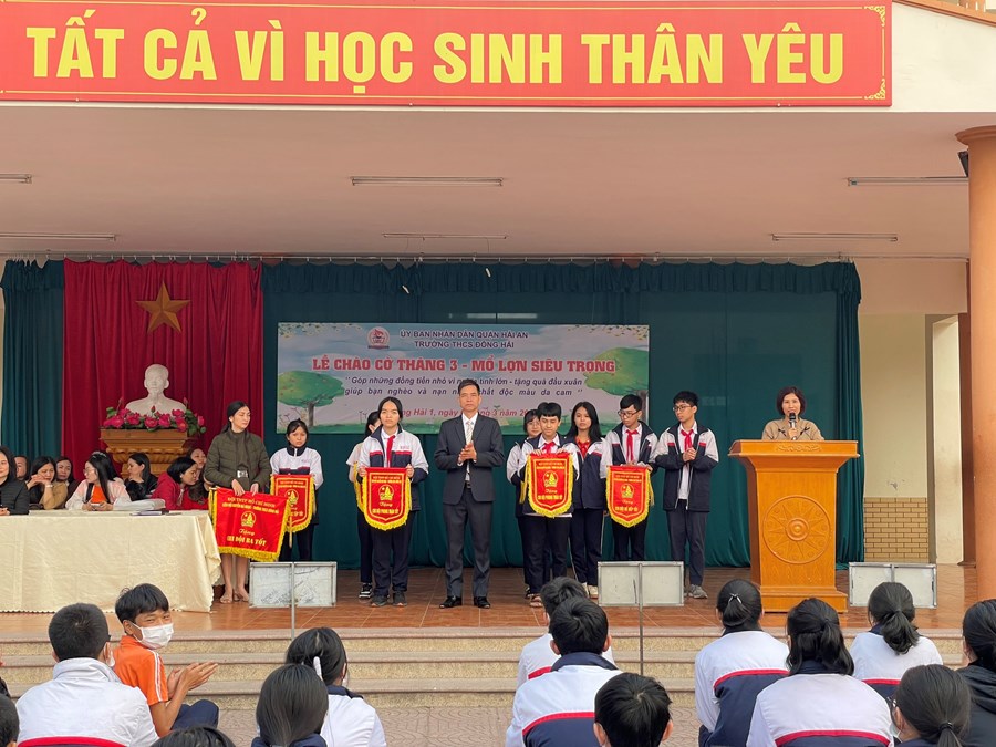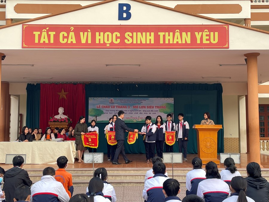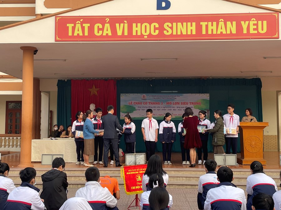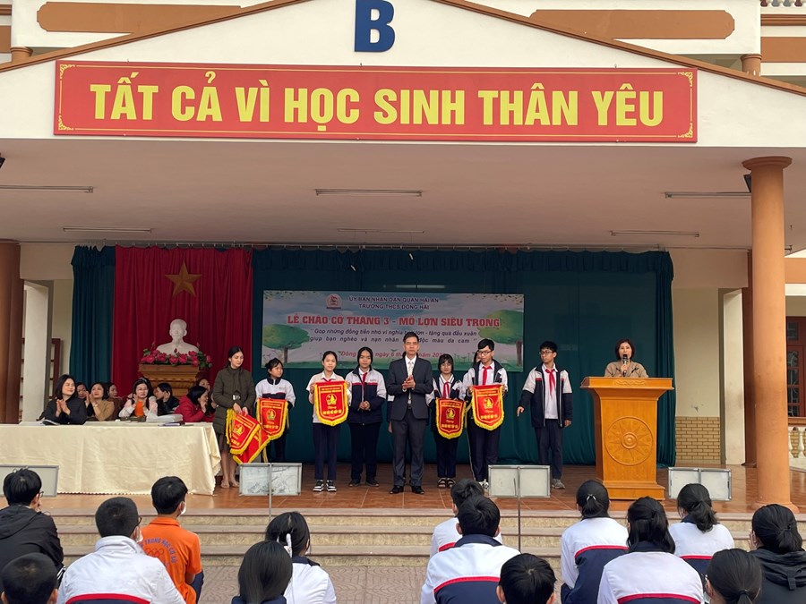 Ngày 6/3/2023, Trường THCS Đông Hải tổ chức Lễ chào cờ tháng 3- Mổ lợn siêu trọng “Góp những đồng tiền nhỏ vì nghĩa tình lớn – Tặng quà đầu xuân giúp bạn nghèo và nạn nhân chất độc màu da cam”