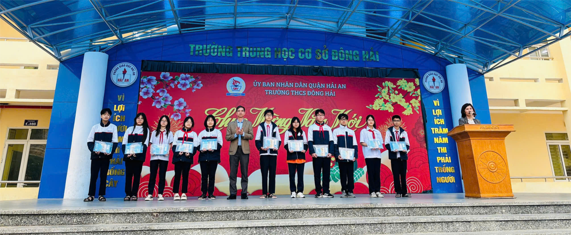 Ngày 3/3/2025, trường THCS Đông Hải tổ chức lễ chào cờ tháng 3. Tham dự buổi lễ có thầy giáo Phạm Hồng Khánh- Hiệu trưởng, cô giáo Trần Thị Thắng- Phó hiệu trưởng cùng toàn thể các cô giáo chủ nhiệm, các em học sinh toàn trường. Tại buổi lễ nhà trường biểu dương 16 Chi Đội đạt kết quả cao được nhận cờ xuất sắc trong phong trào thi đua 3 Tốt: Học tập tốt, nề nếp tốt, phong trào tốt và chi Đội 3 Tốt. Khen thưởng 11 em học sinh đạt điểm số cao nhất trong kỳ thi khảo sát chất lượng lớp 9. Thầy giáo Phạm Hồng Khánh- Hiệu trưởng nhà trường căn dặn, động viên các em học sinh, đặc biệt với học sinh khối 9 đang ôn thi vào lớp 10. Mong các em cố gắng nỗ lực thật nhiều để đạt được kết quả học tập như mong muốn.