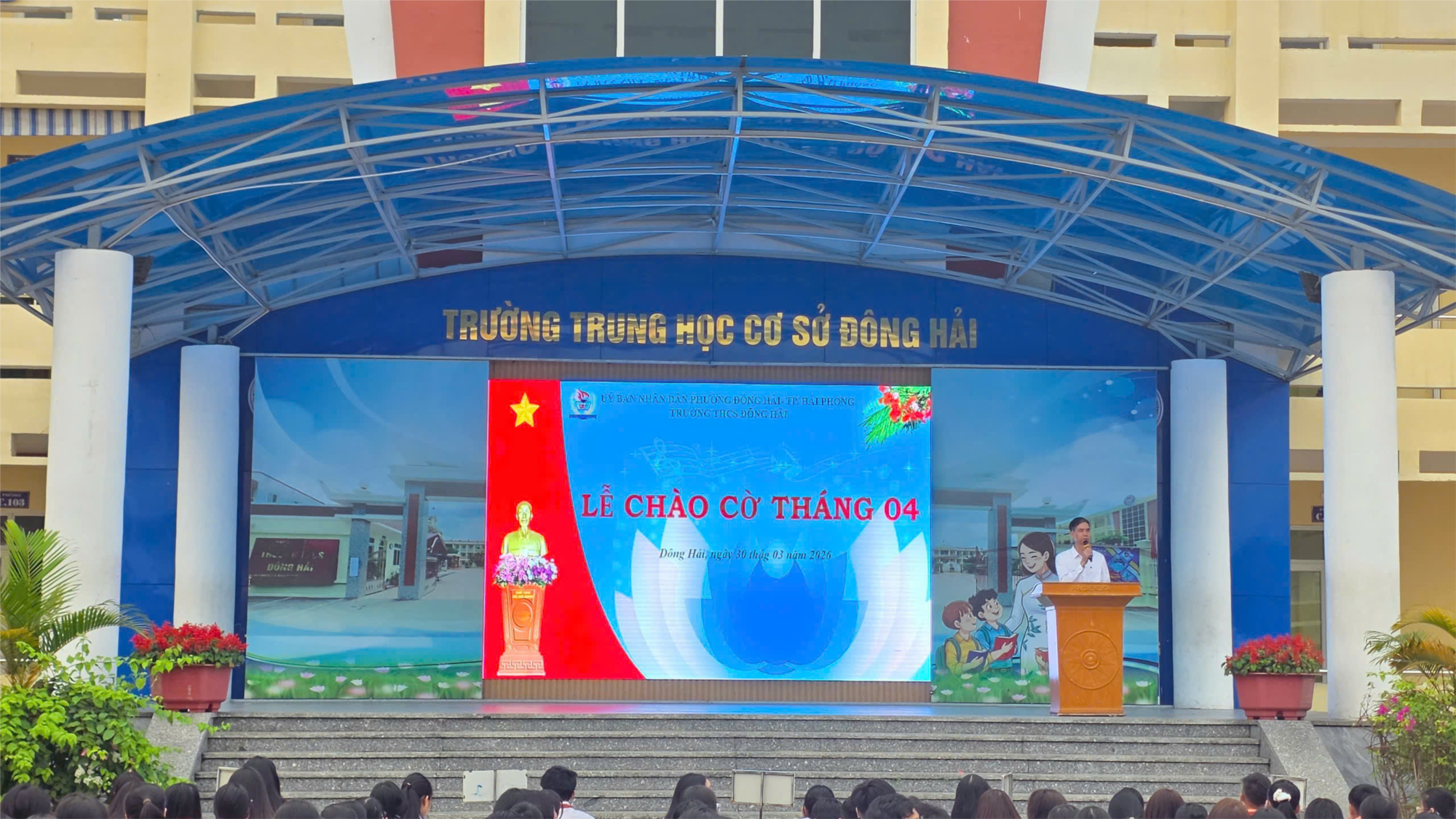 Ngày 30/03/2026, trường THCS Đông Hải tổ chức lễ chào cờ tháng 4.