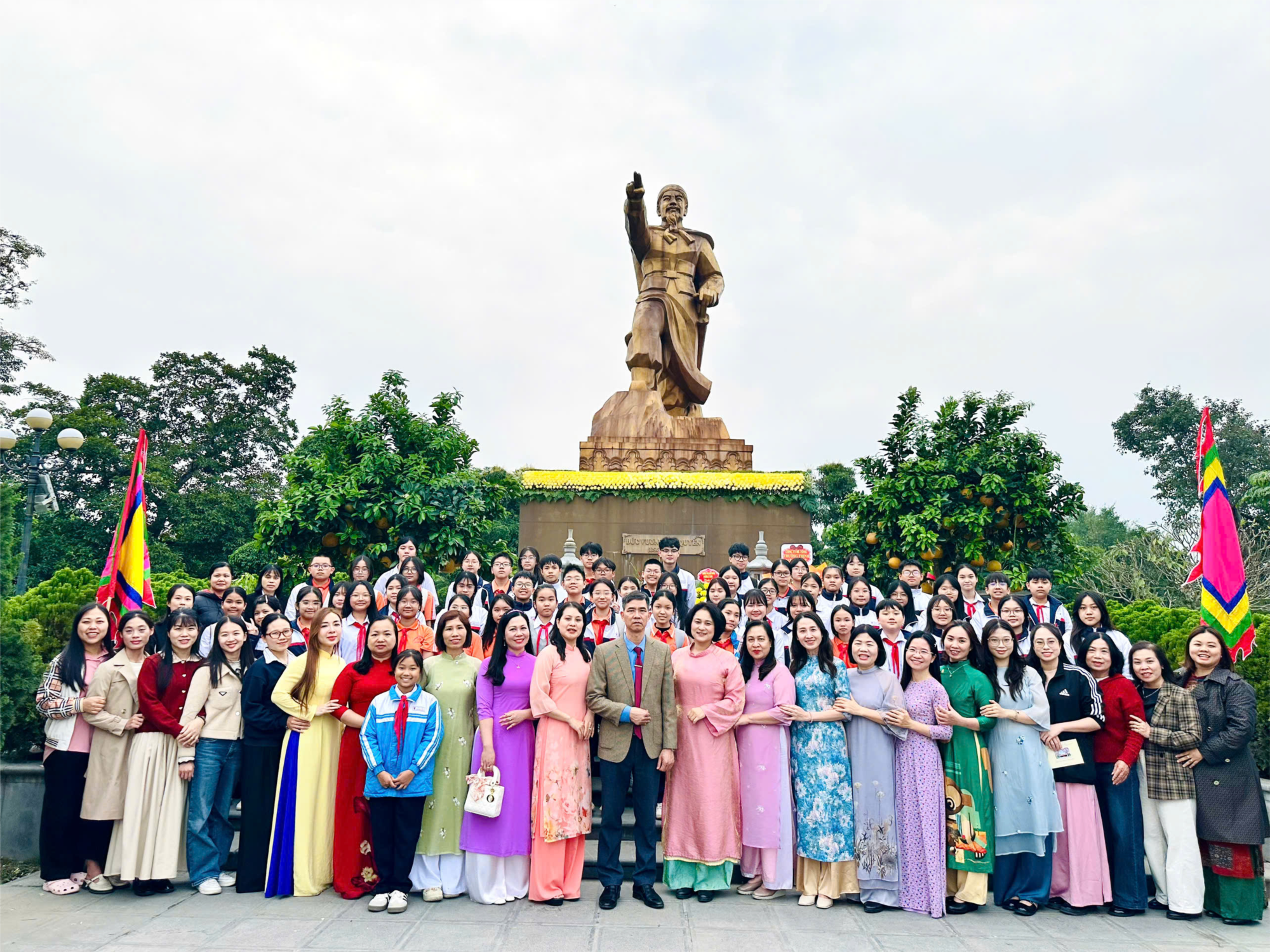 Trong không khí linh thiêng, đoàn đại biểu gồm Ban giám hiệu, giáo viên và học sinh tiêu biểu của nhà trường đã thành kính dâng hương, bày tỏ lòng biết ơn sâu sắc đối với vị anh hùng dân tộc Ngô Quyền – người đã lãnh đạo quân dân ta làm nên chiến thắng Bạch Đằng lịch sử năm 938, mở ra thời kỳ độc lập, tự chủ lâu dài cho dân tộc Việt Nam.