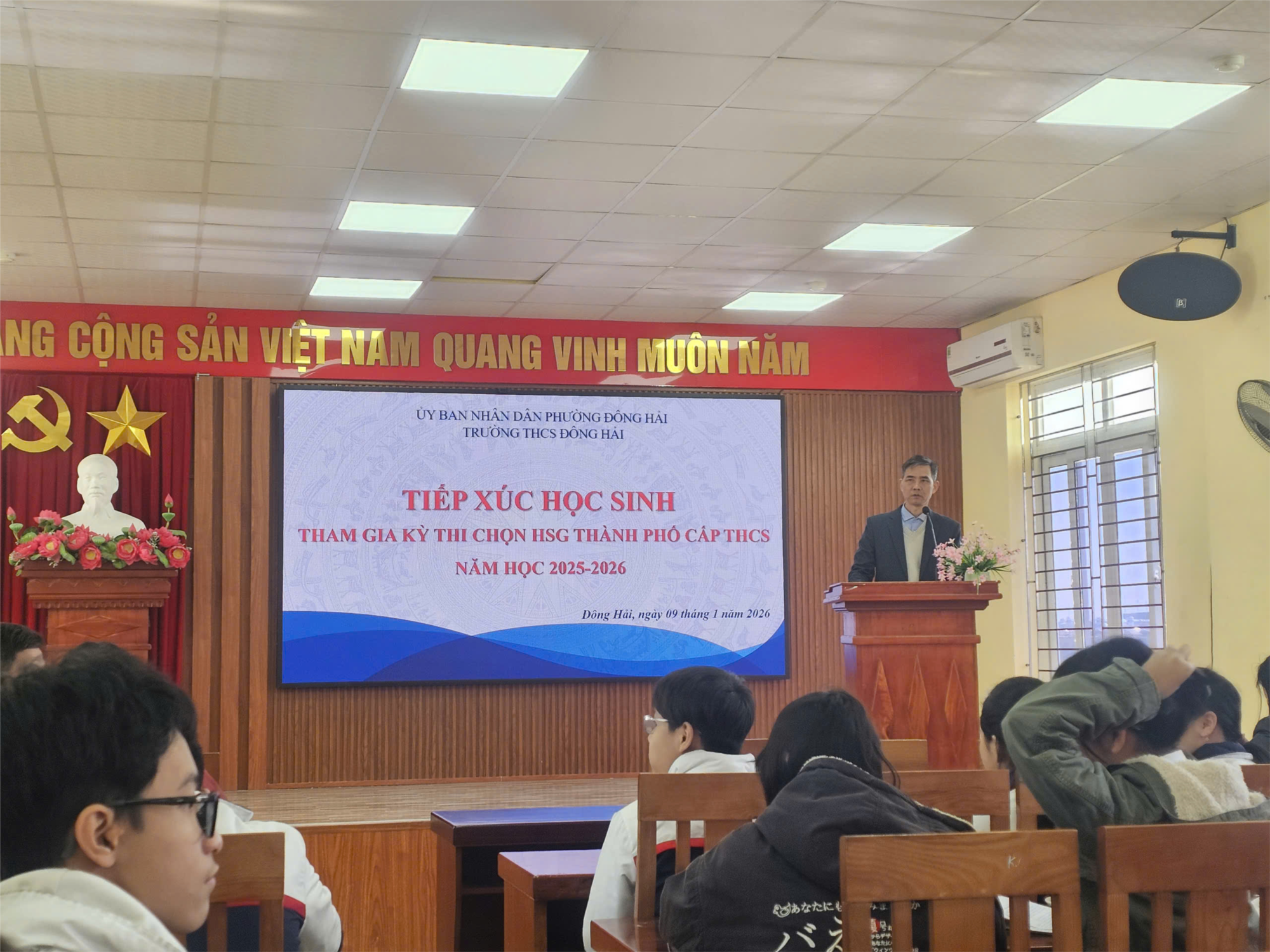 Sáng ngày 09/1/2026, trường THCS Đông Hải tổ chức tiếp xúc học sinh dự thi học sinh giỏi cấp thành phố năm học 2025-2026. Tham dự buổi gặp mặt có: