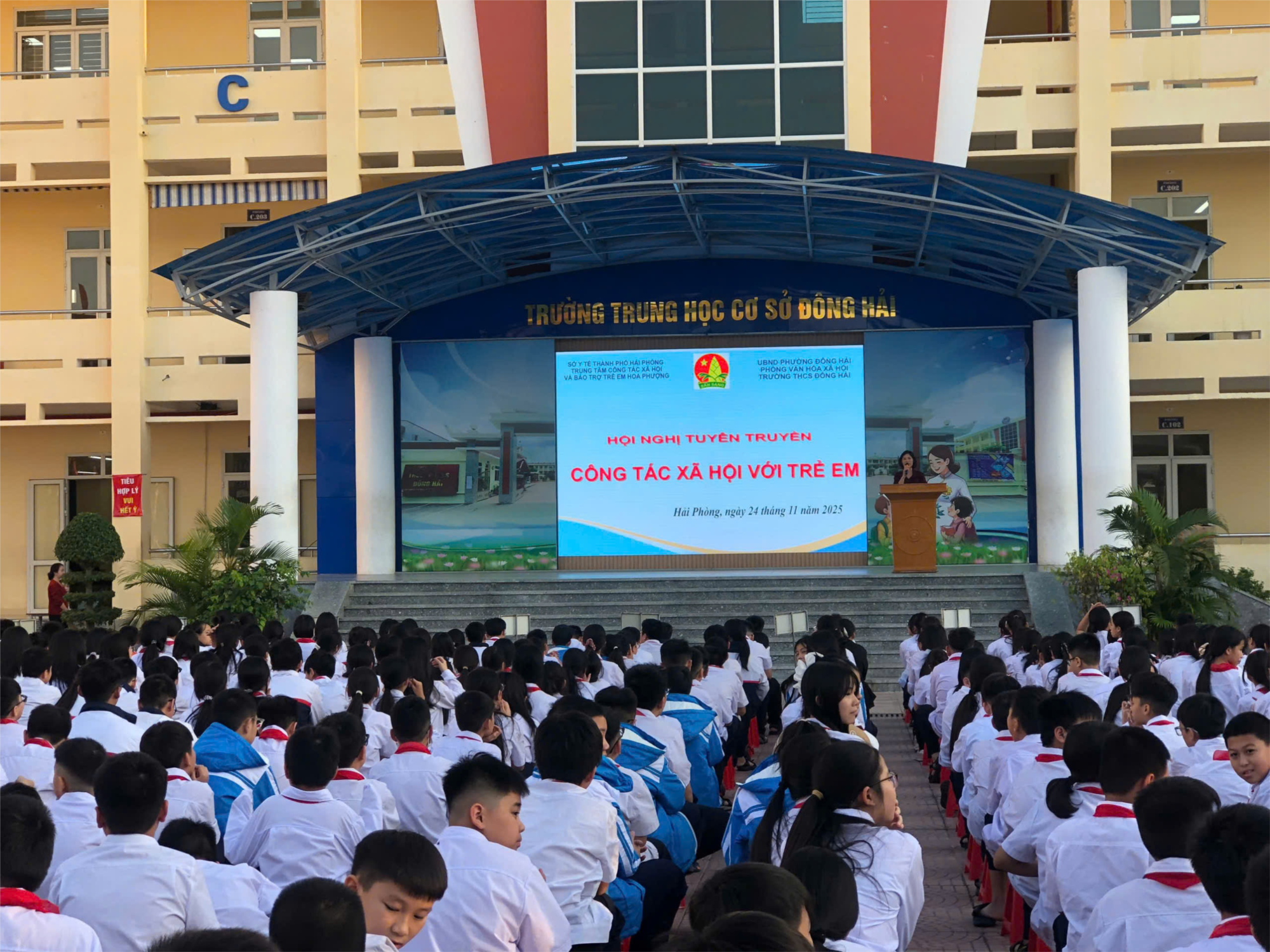 Chiều ngày 24/11/2025, Trường THCS Đông Hải kết hợp cùng trung tâm công tác xã hội và bảo trợ trẻ em Hoa Phượng tổ chức hội nghị tuyên truyền công tác xã hội với trẻ em năm 2025. Tham dự chương trình có đồng chí Nguyễn Tâm Đan- Phó phòng công tác xã hội và quỹ bảo trợ trẻ em, đồng chí Nguyễn Thị Ngọc Hà- Cán bộ trung tâm công tác xã hội và bảo trợ trẻ em Hoa Phượng; Về phía nhà trường có các thầy cô giáo và 2286 học sinh toàn trường.