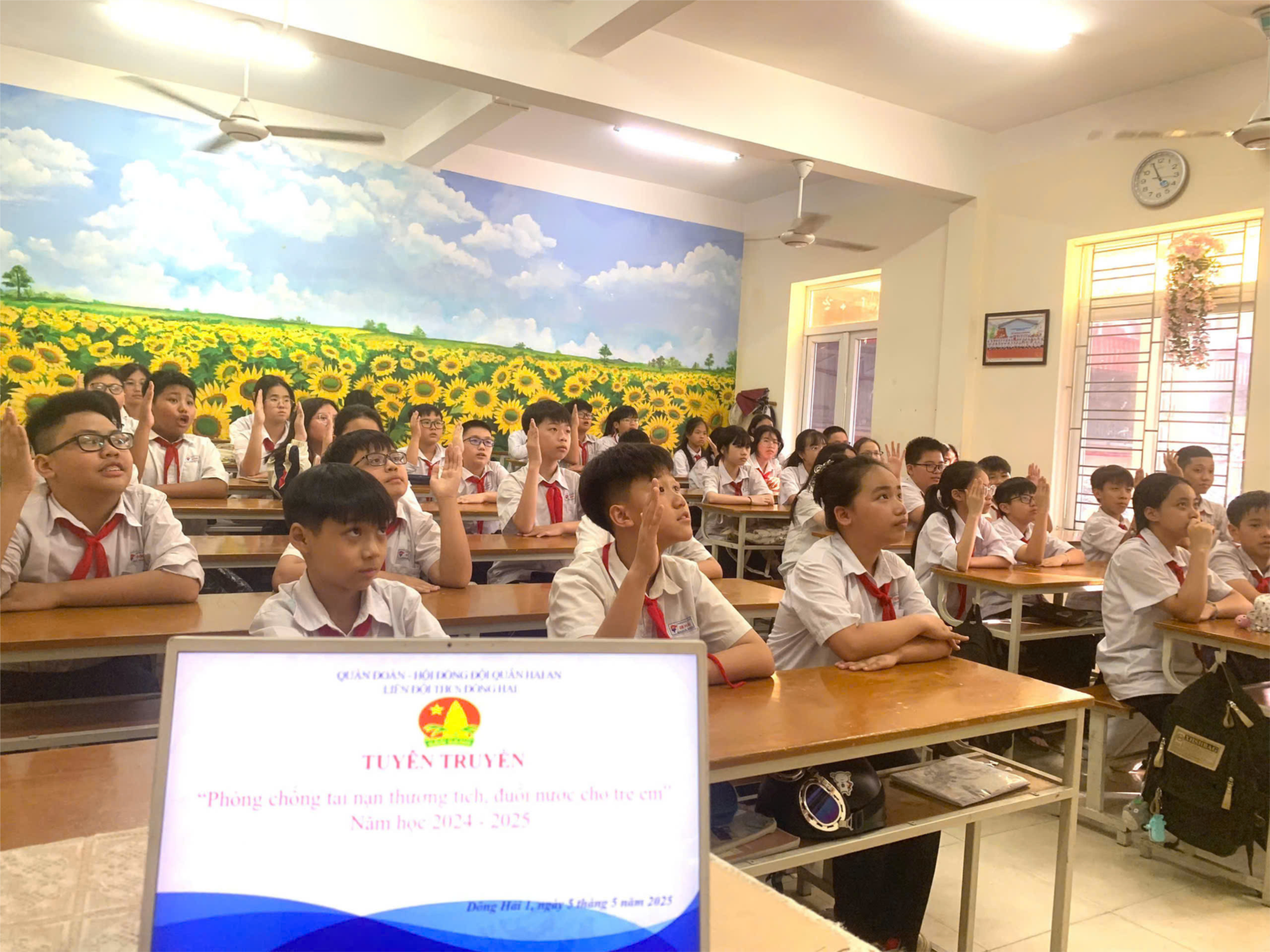 Ngày 5/5/2025, trường THCS Đông Hải tổ chức tuyên truyền phòng chống tai nạn thương tích, đuối nước cho các em học sinh. Kỳ nghỉ hè đang tới gần, đó là lúc các em học sinh được nghỉ ngơi sau một năm học tập, với thời tiết nắng nóng nên việc đi bơi là thú vui được nhiều học sinh ưa thích, nhiều gia đình sẽ tổ chức cho các bạn học sinh đi nghỉ mát, tắm biển. Khắp nơi trẻ em cũng sẽ tự rủ nhau đi tắm mát ở sông, suối, ao, hồ...Đây cũng chính là nguyên nhân khiến nhiều tai nạn đuối nước xảy ra, tỉ lệ tử vong do đuối nước ngày càng cao ở khu vực có nhiều sông, hồ, ao suối.