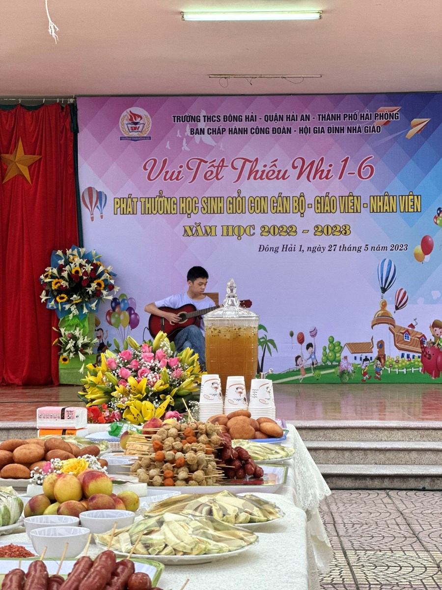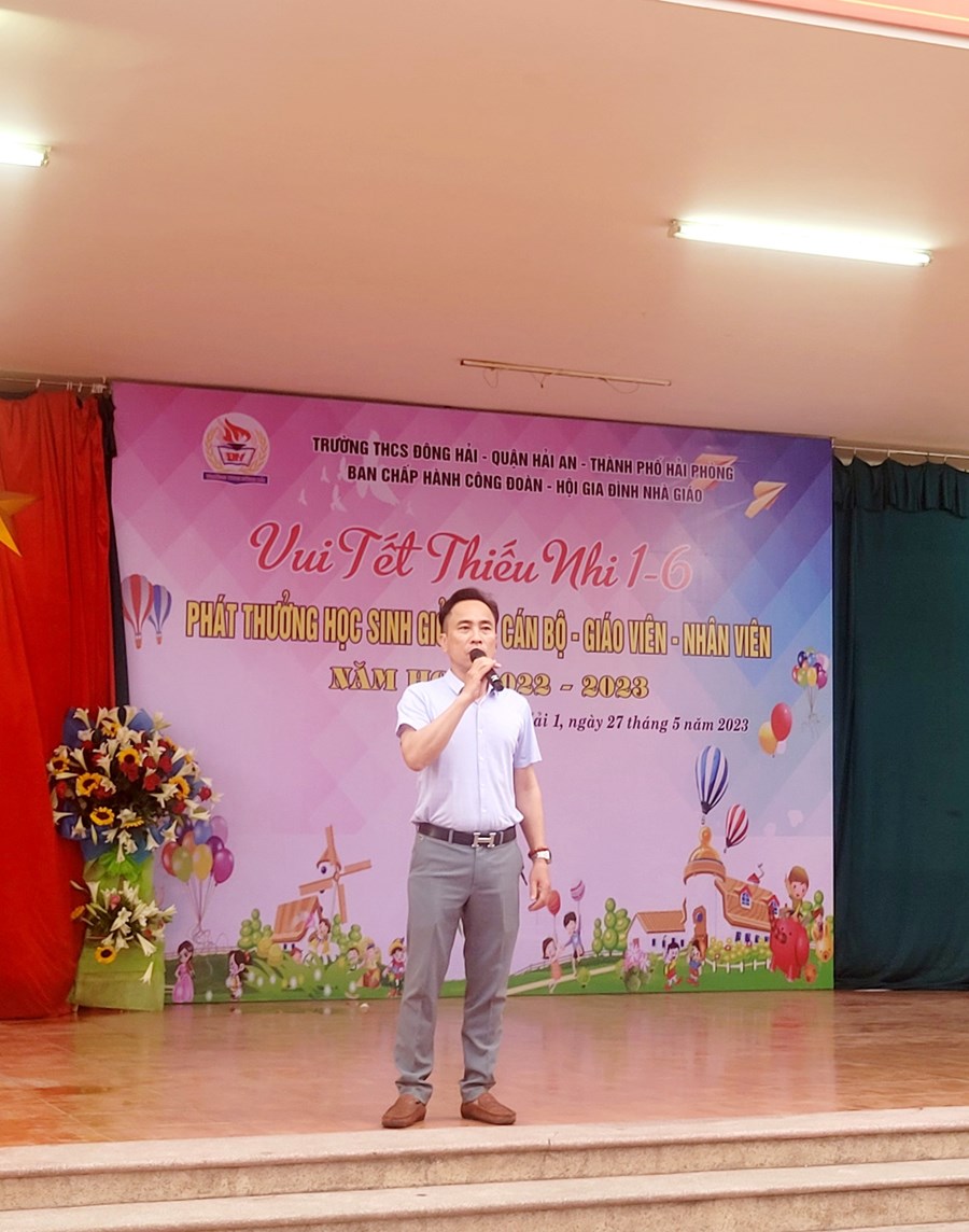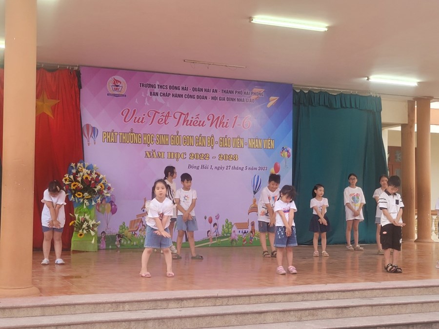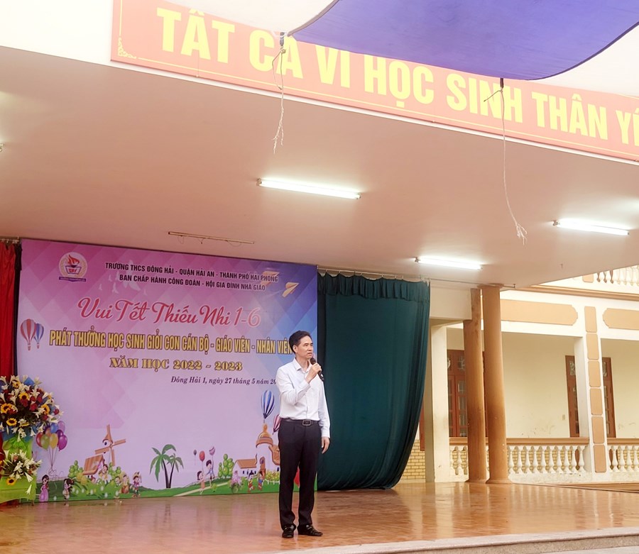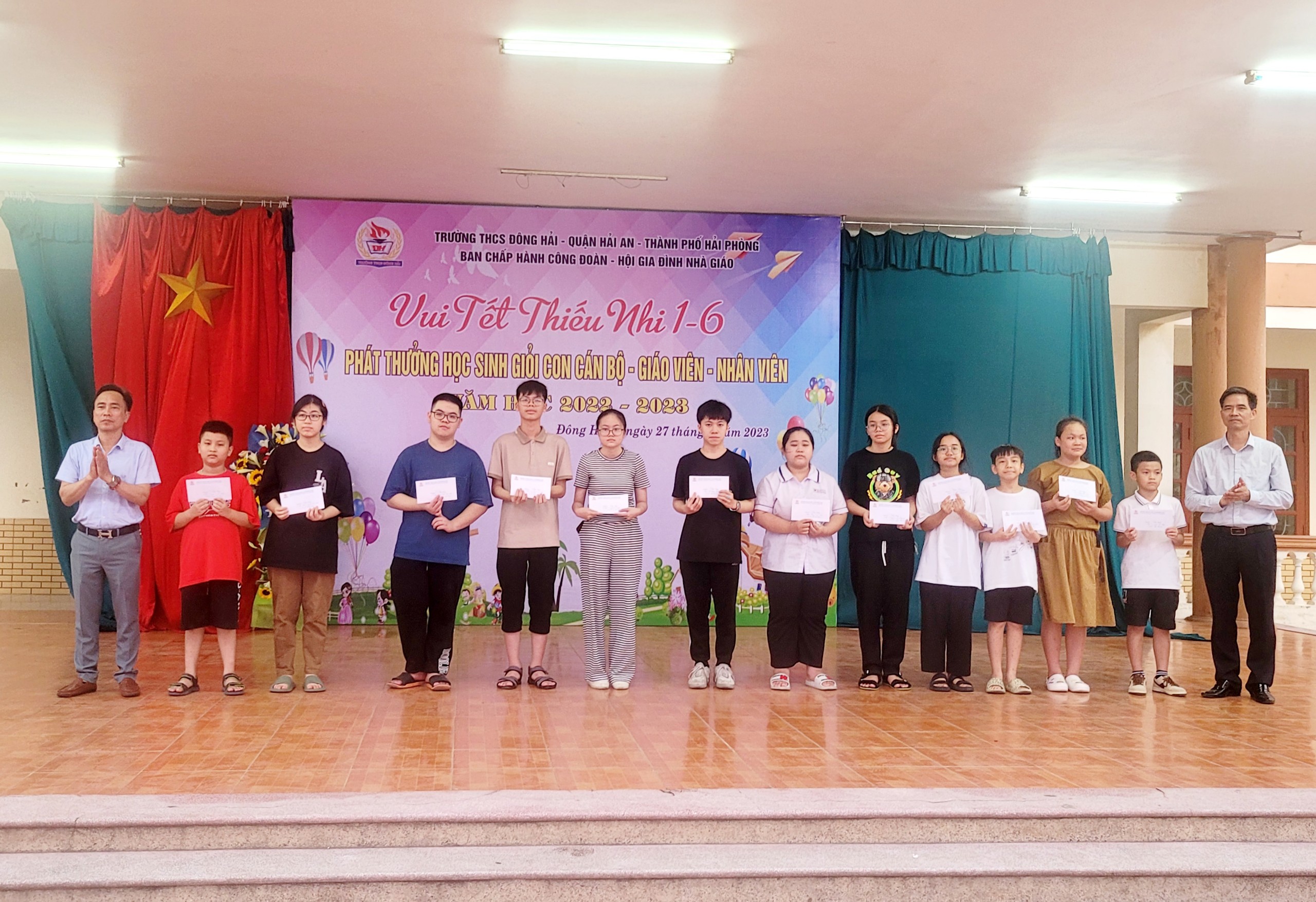 Trẻ em hôm nay –Thế giới ngày mai. Trẻ em trên khắp thế giới đều xứng đáng nhận được tình yêu thương, sự quan tâm từ gia đình và xã hội bởi với tâm hồn trong sáng, còn non nớt, đẽ bị tổn thương, trẻ em cần được bảo vệ và giáo dục một cách khoa học, hợp lý để phát triển toàn diện. Với tinh thần đó, ngày 27 tháng 05 năm 2023, Ban giám hiệu; Ban chấp hành Công đoàn ; Hội gia đình nhà giáo trường THCS Đông Hải đã long trọng tổ chức chương trình “ Vui Tết thiếu nhi 1/6 - Phát thưởng học sinh giỏi, con Cán bộ- Giáo viên- Nhân viên lao động nhà trường đạt thành tích tốt trong học tập và rèn luyện năm học 2022-2023.Về dự chương trình có ông Phạm Hồng Khánh- Bí thư Chi bộ - Hiệu trưởng nhà trường, bà Nguyễn Thị Ngọc Huyền - chủ tịch Công đoàn và ông Nguyễn Văn Tuấn - Chủ tịch hội gia đình nhà giáo trường THCS Đông Hải cùng các đồng chí và các con CB- GV-NVLĐ nhà trường. Một bữa tiệc vui vẻ, những phần quà nho nhỏ là sự quan tâm, lời động viên, khích lệ của lãnh đạo các đoàn thể nhà trường cùng các bậc phụ huynh dành tặng , ghi nhận sự nỗ lực cố gắng đạt thành tích tốt của các con trong năm học vừa qua. Chúc các con luôn chăm ngoan, học giỏi, rèn đức, luyện tài, xứng đáng là những chủ nhân tương lai của đất nước.