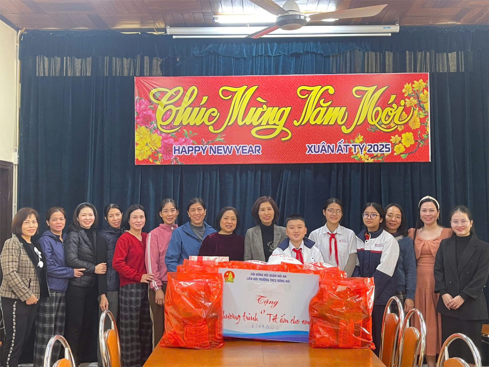 Thực hiện công văn số 281/GDĐT ngày 18/12/2024 của Phòng GDĐT quận về việc tổ chức các hoạt động văn hóa thông tin tuyên truyền mừng Đảng, mừng Xuân Ất Tỵ năm 2025; Thực hiện kế hoạch số 62KH/Đ-H ngày 29/11/2024 của Quận Đoàn về tổ chức các hoạt động mừng Đảng, mừng Xuân Ất Tỵ 2025, chương trình Tình nguyện mùa Đông 2024 và Xuân tình nguyện 2025; Kế hoạch số 47/KH-CTĐ ngày 12/11/2024 của Hội chữ thập đỏ quận Hải An triển khai phong trào “Tết nhân ái” xuân Ất Tỵ; Thực hiện chương trình công tác Đội và phong trào thiếu nhi năm học 2024-2025 về việc phát động cuộc vận động “Góp những đồng tiền nhỏ vì nghĩa tình lớn- Tặng quà đầu xuân giúp bạn nghèo và nạn nhân chất độc da cam” năm 2025; Trường THCS Đông Hải tổ chức các hoạt động Tặng quà nhân dịp Tết Nguyên Đán đang đến gần!