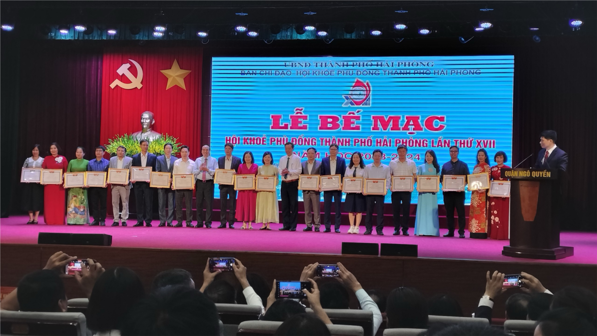 Ngày 12/12/2023, Trường THCS Đông Hải tham dự lễ bế mạc Hội khỏe Phù Đổng thành phố lần thứ XVII năm học 2023-2024. Tham dự chương trình có các đồng chí lãnh đạo Sở giáo dục và đào tạo; Lãnh đạo, chuyên viên Phòng GD&ĐT các quận, huyện; Hiệu trưởng các trường tiểu học, THCS, THPT, trường PT nhiều cấp học. Trong chương trình buổi lễ bế mạc trường THCS Đông Hải vinh dự nhận giấy khen hoàn thành tốt nhiệm vụ trong công tác tổ chức Hội khỏe Phù Đổng thành phố Hải Phòng lần thứ XVII năm học 2023-2024. Hội khỏe Phù Đổng thành phố diễn ra từ ngày 1/12 đến 12/12 đã thành công tốt đẹp. Đây cũng chính là hoạt động thiết thực nhất của công tác giáo dục thể chất, tạo điều kiện cho các em trở thành những con người toàn diện: cường tráng về thể chất, trong sáng về tâm hồn.