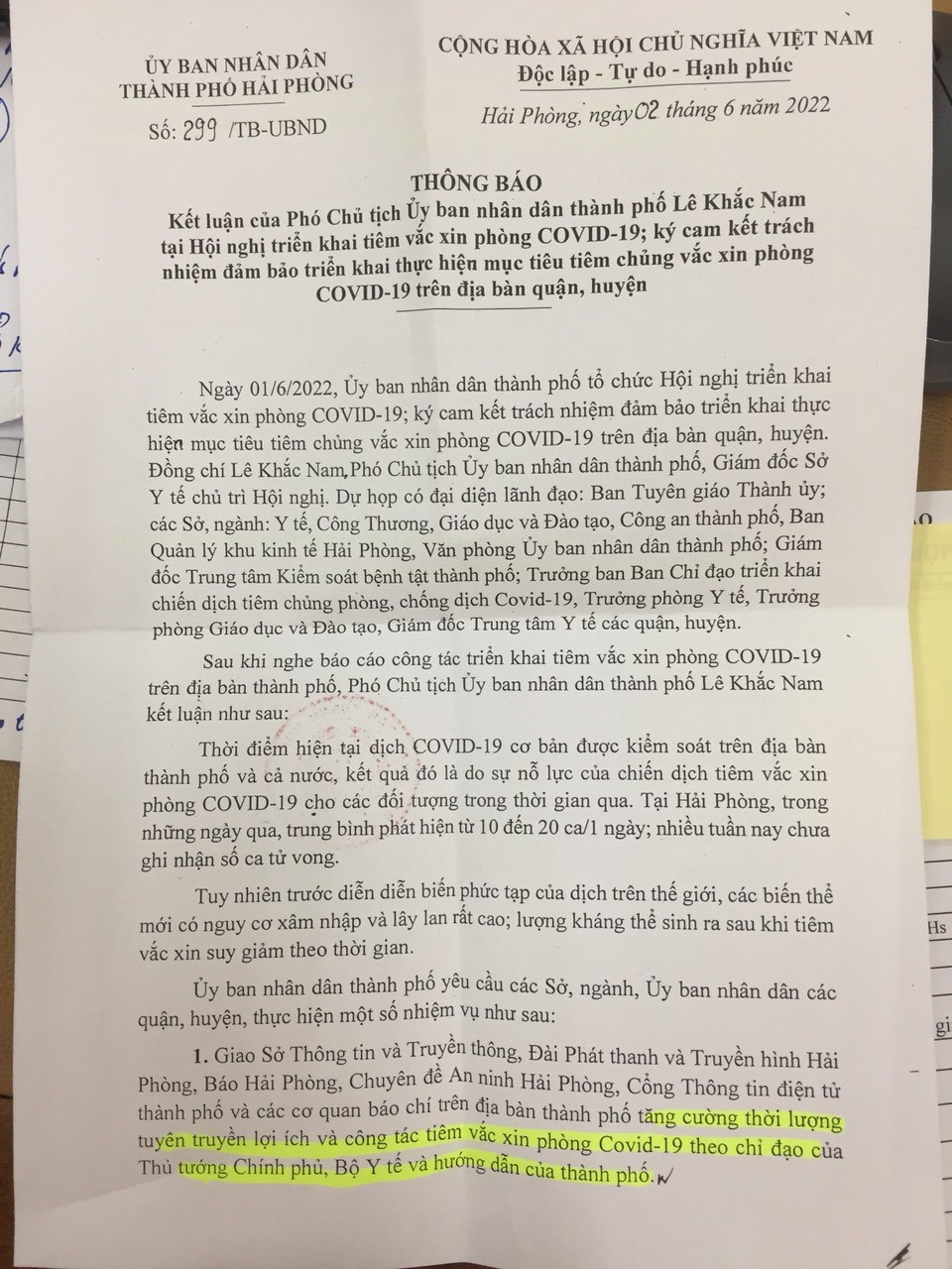 Công văn số 299 về việc triển khai tiêm vacxin phòng COVID 19